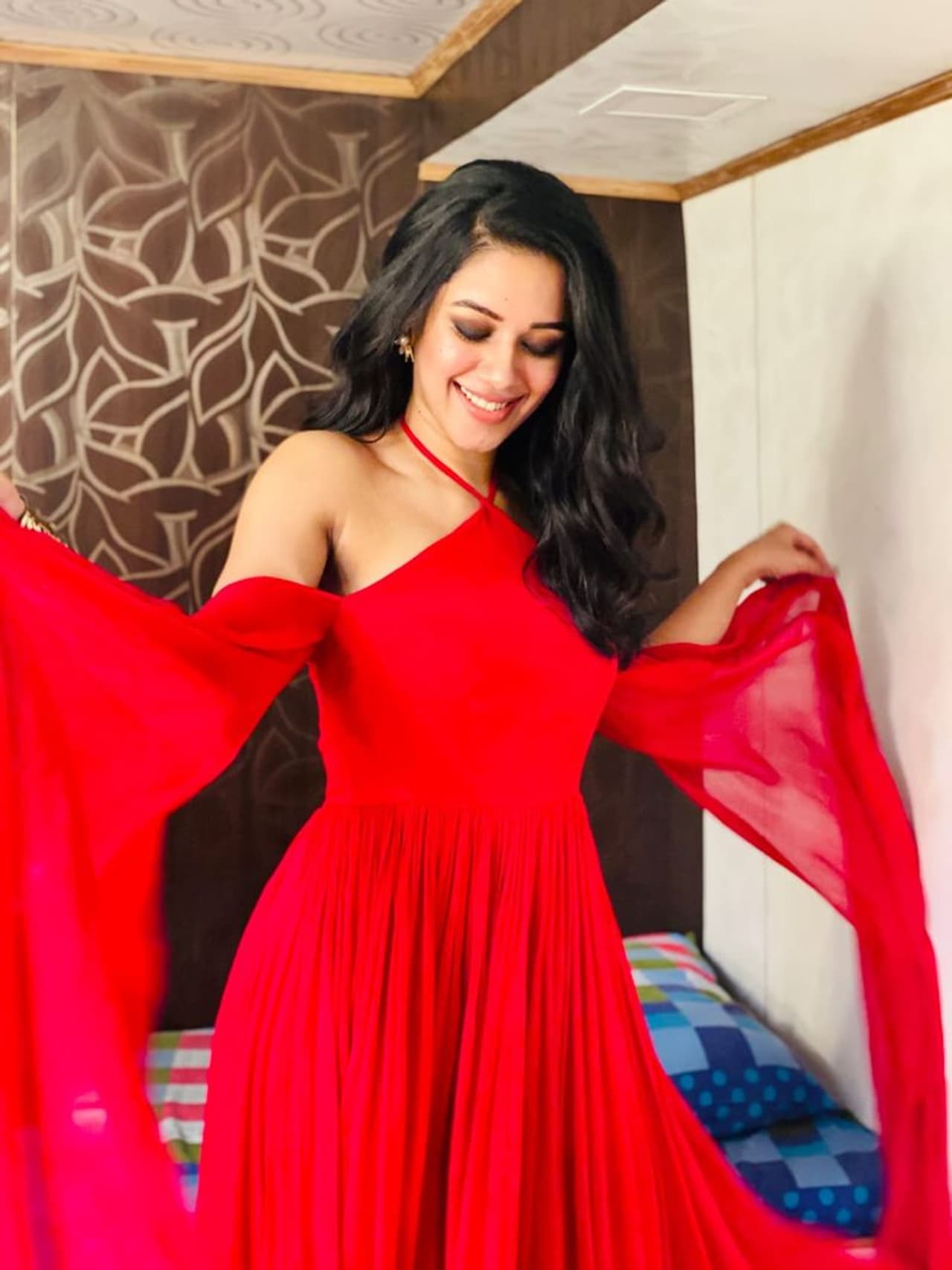 டிக் டாக் பிரபலமும் (Tik tok Fame), நடிகையுமான மிர்னாலினி ரவி (Mirnalini Ravi) அடுத்தடுத்து தமிழ் படங்களில் கமிட் ஆகி வரும் நிலையில், முன்பை விட கவர்ச்சியையும் கொஞ்சம் கூடுதலாகவே காட்ட துவங்கியுள்ளார். அந்த வகையில் தற்போது, சிவப்பு நிற ஹாட் உடையில்... கழுத்தில் இருக்கும் தம்மாத்தூண்டு கயிறு பேலன்சில் நிற்கும் உடையில் போஸ் கொடுத்து மிரள வைத்துள்ளார்.