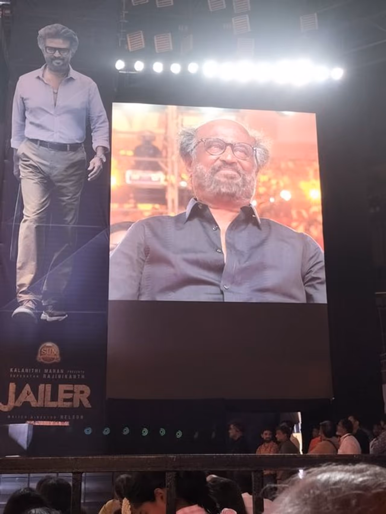 சூப்பர் ஸ்டார் ரஜினிகாந்த் அண்ணாத்த படத்தை தொடர்ந்து, நடித்து முடித்துள்ள திரைப்படம் 'ஜெயிலர்'. இந்த படத்தை டாக்டர், கோலமாவு கோகிலா, பீஸ்ட், போன்ற படங்களை இயக்கிய இயக்குனர் நெல்சன் திலீப் குமார் இயக்கியுள்ளார். ஆகஸ்ட் 10ஆம் தேதி வெளியாக உள்ள இந்த படத்தின் இசை வெளியீட்டு விழா நேற்று மாலை சென்னையில் உள்ள நேரு உள் விளையாட்டு அரங்கில் மிக பிரம்மாண்டமாக நடந்தது. இந்த விழாவில் கன்னட சூப்பர் ஸ்டார் சிவராஜ் குமார், தயாரிப்பாளர்கள் கலாநிதி மாறன், இசையமைப்பாளர் அனிருத், நடிகர் ஜாக்கி செரீப், நடிகை தமன்னா, ரம்யா கிருஷ்ணா, யோகி பாபு, நயன்தாராவின் கணவர் விக்னேஷ் சிவன், உள்ளிட்ட பலர் கலந்து கொண்டனர்.