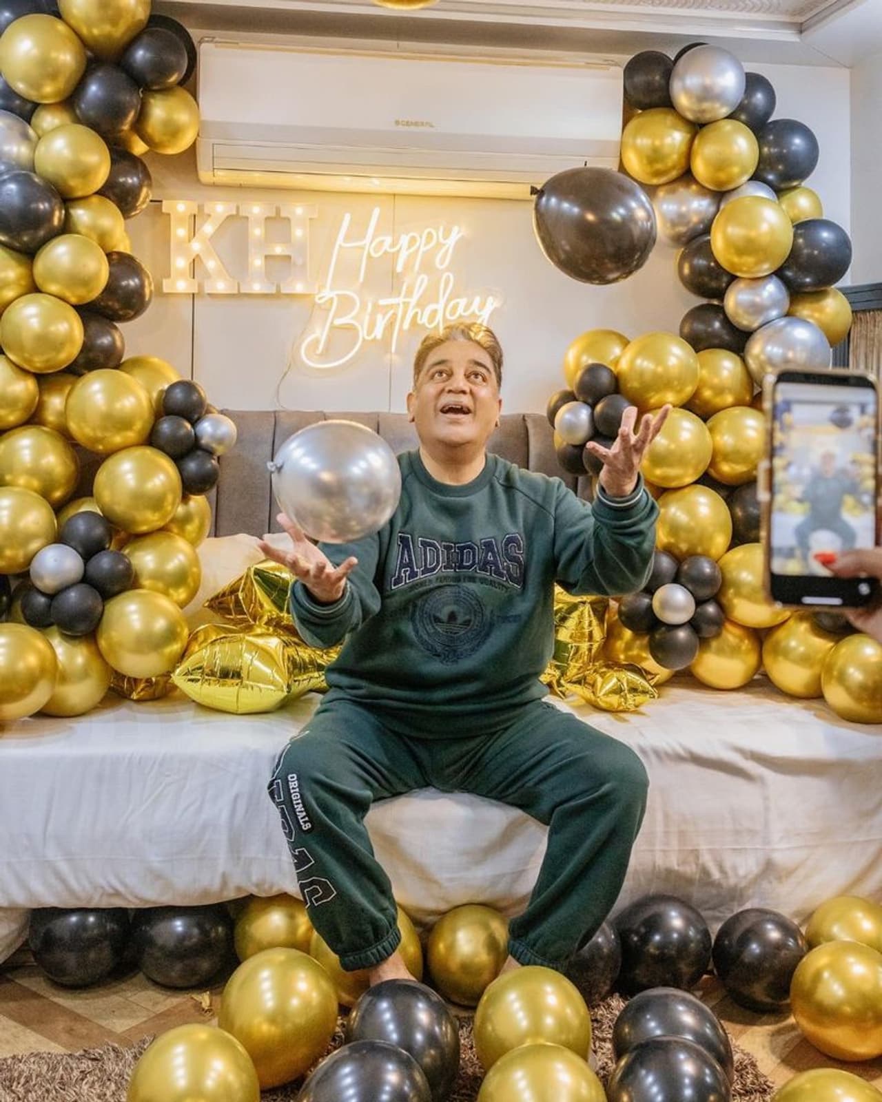 பிறந்தநாள் செலிப்ரேஷனுக்கு தயாரான உலக நாயகன்! பலூனை கண்டதும் குழந்தையாகவே மாறி விளையாடிய கமல் போட்டோஸ்!