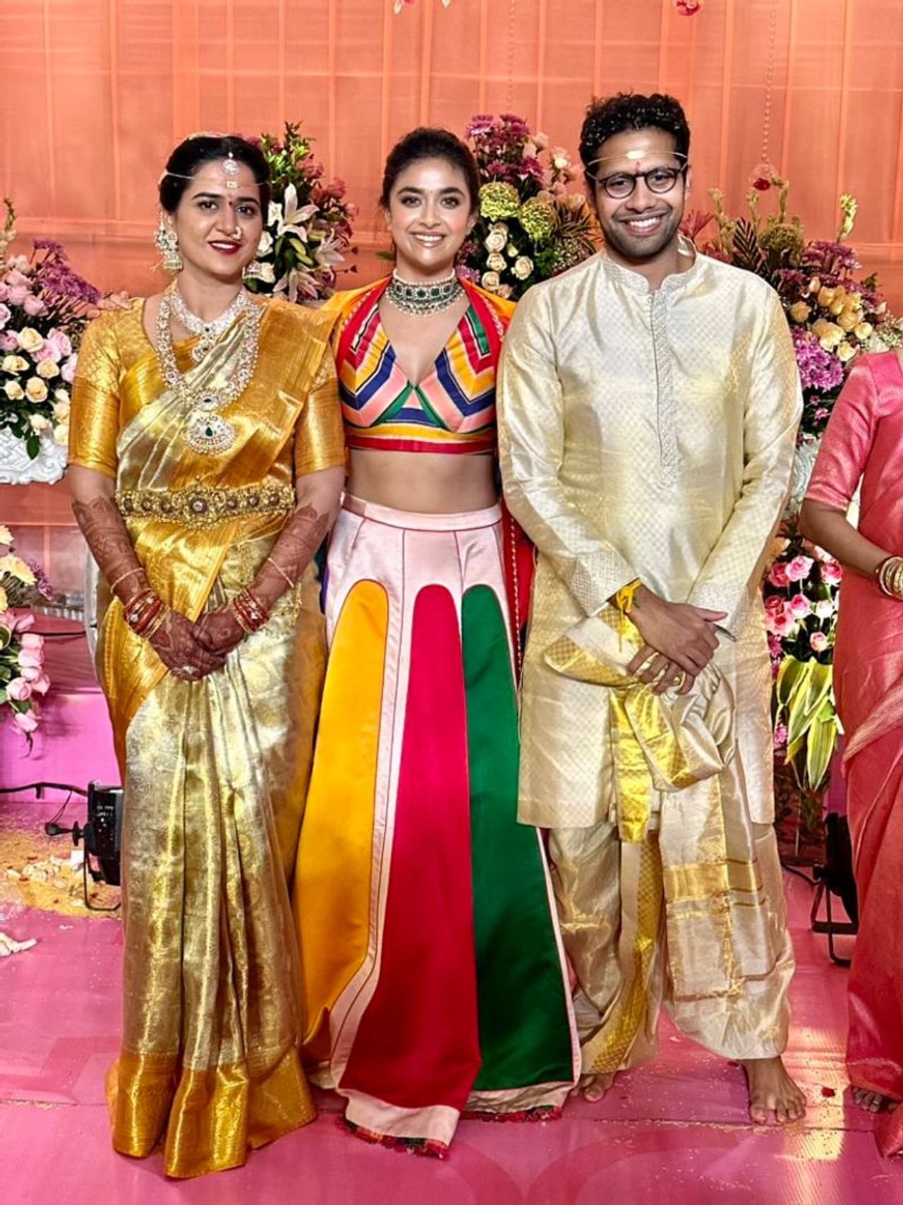 நடிகை கீர்த்தி சுரேஷ், வெங்கி அட்லூரி இயக்கத்தில் ராங் டே என்கிற தெலுங்கு படத்தில் நடித்திருந்தார். அப்படத்தின் நாயகன் நிதின் உடன் வந்து வெங்கி அட்லூரி திருமணத்தில் நடிகை கீர்த்தி சுரேஷ் கலந்துகொண்டார். அப்போது எடுத்த புகைப்படங்கள் வெளியாகி சோசியல் மீடியாவில் செம்ம வைரல் ஆகி வருகிறது.