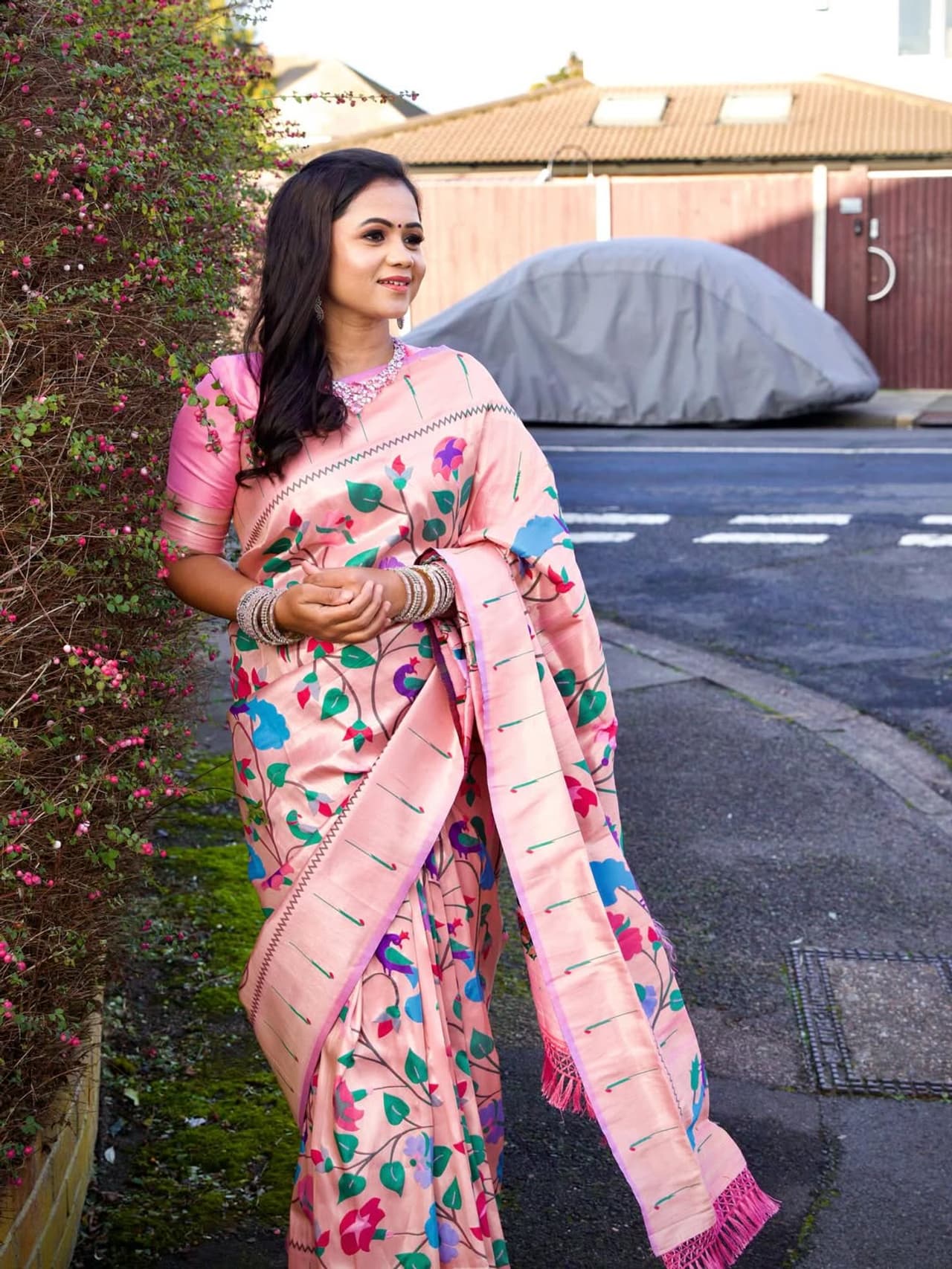 இத்தகைய சூழ்நிலையில், லண்டனுக்கு சென்ற மணிமேகலை சேலையில் கட்டி இருக்கும் போட்டோக்களை தனது இன்ஸ்டாகிராமில் பகிர்ந்துள்ளார்.