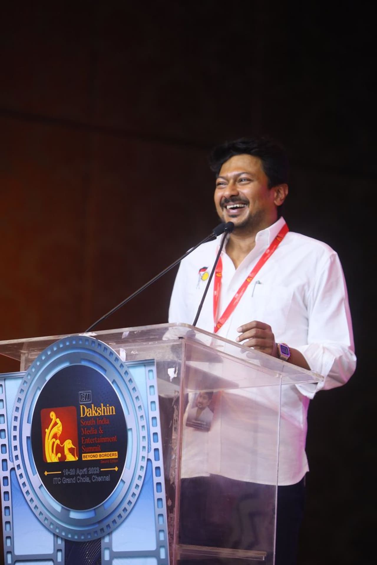 2023-ம் ஆண்டுக்கான தக்ஷின் மாநாடு இன்று சென்னையில் தொடங்கி நடைபெற்று வரும் நிலையில், அதில் அமைச்சர் உதயநிதி ஸ்டாலினும் சிறப்பு விருந்தினராக கலந்துகொண்டு பேசினார்.
