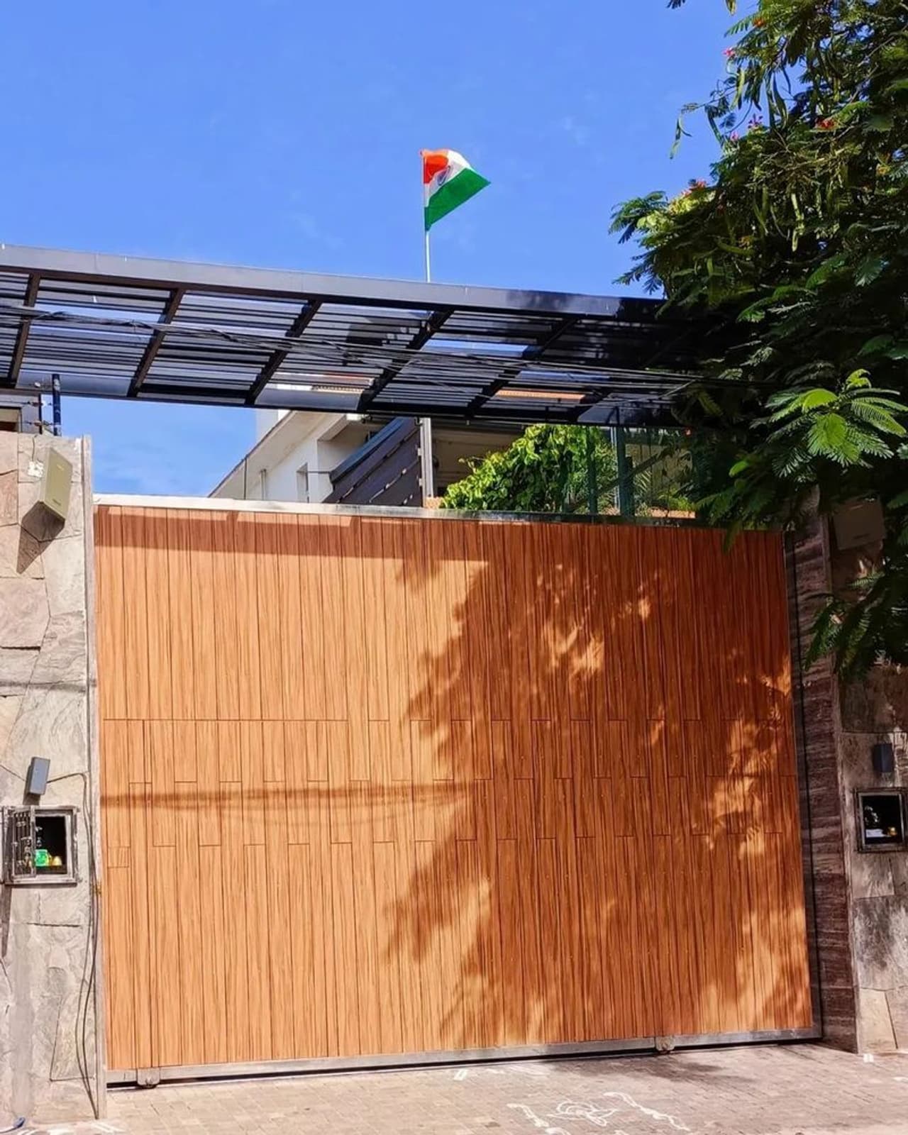 இந்நிலையில் நீலாங்கரையில் நடிகர் விஜய்யின் வீடு அமைந்துள்ள பகுதியில் உள்ள மரம் ஒன்று மூவர்ண கொடியை போல் அலங்கரிக்கப்பட்ட மின் விளக்குகளால் ஜோடிக்கப்பட்டது வைரலானதை தொடர்ந்து, தற்போது விஜயின் வீட்டு வாசலில் தேசிய கொடி பறந்து கொண்டிருக்கிறது. இந்த புகைப்படம் தற்போது சமூக வலைத்தளத்தில் வேகமாக பரவி வருகிறது.