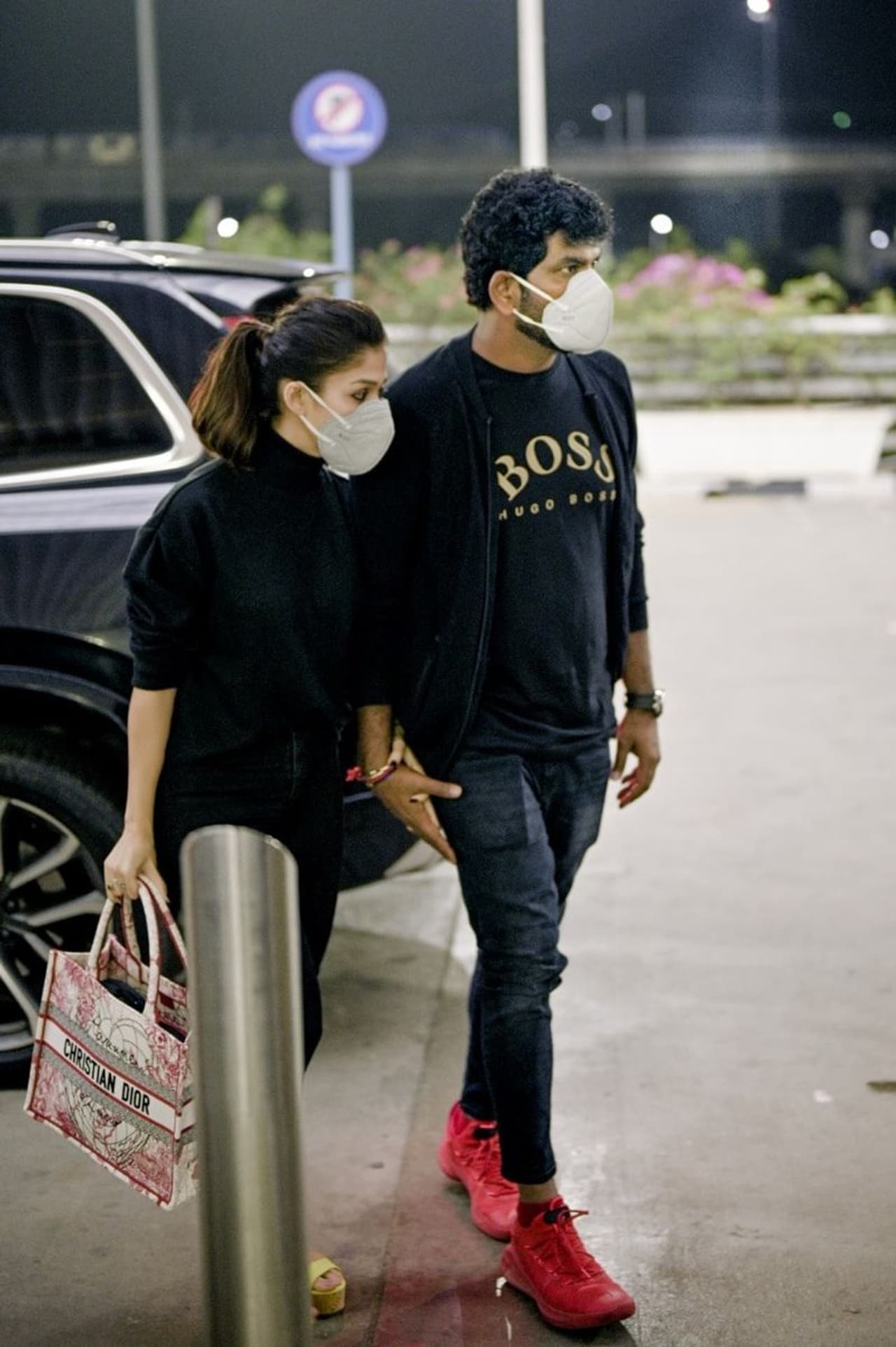 விமான நிலையத்தில் காதலன் விக்னேஷ் சிவனுடன், ஜோடியாக போஸ் கொடுத்தபடி இருக்கும் நயன்தாராவின் புகைப்படங்கள் சமூக வலைதளங்களில் வைரலாகி வருகின்றன.