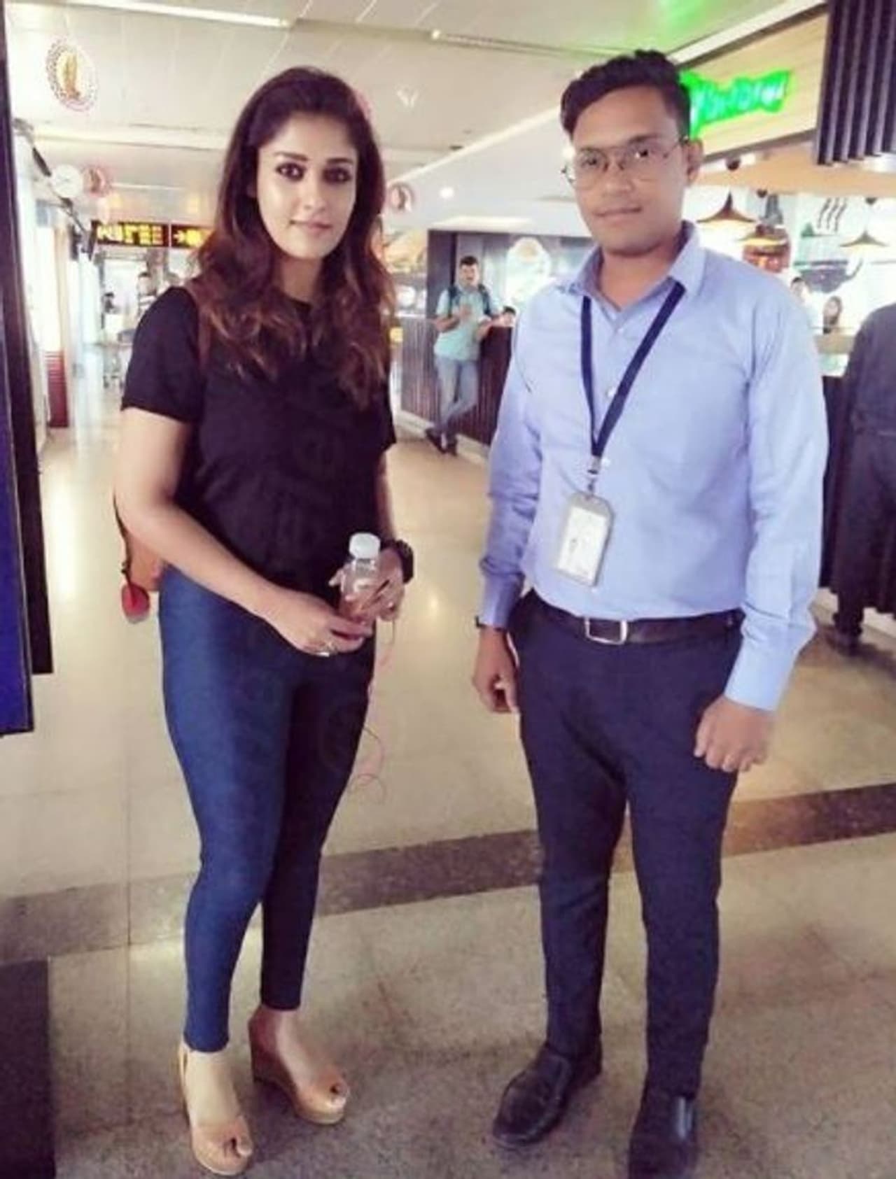 எத்தனை ரசிகர்கள் புகைப்படம் எடுக்க வந்தாலும் சிரித்த முகத்துடன் பூரித்து கொண்டே போஸ் கொடுக்கும் நயன்