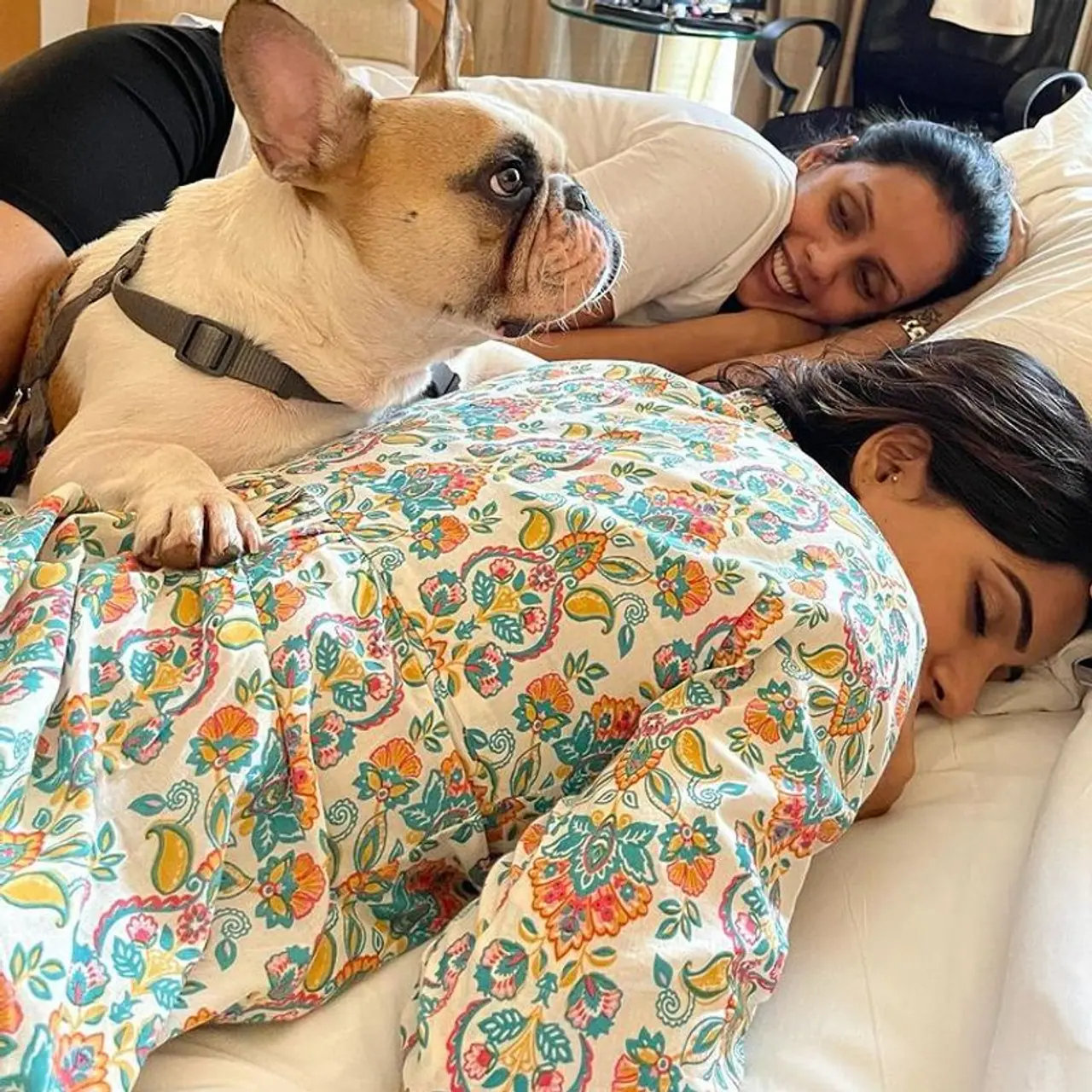 இதுகுறித்து இவர் பதிவிட்டுள்ளதாவது ‘இவ்வளவு சீக்கிரம் இதை பார்ப்பேன் என நான் எதிர்பார்க்கவே இல்லை. ஒவ்வொரு நாளும் இந்த நாய் குட்டிகள் தனக்கு எதையாவது கற்றுக் கொடுத்து வருகின்றன என்றும் பிற நாய்களுடன் சேராத ஷாஷா, இவ்வளவு சீக்கிரத்தில் சக நாயை சகோதரனாக ஏற்றுக் கொண்டதே எனக்கு கிடைத்த ஆசிர்வாதம் என்றும் தெரிவித்துள்ளார். இரண்டு நாய்களும் ஒன்றாக படுத்திருக்கும் புகைப்படத்தையும் வெளியிட்டுள்ளார்.