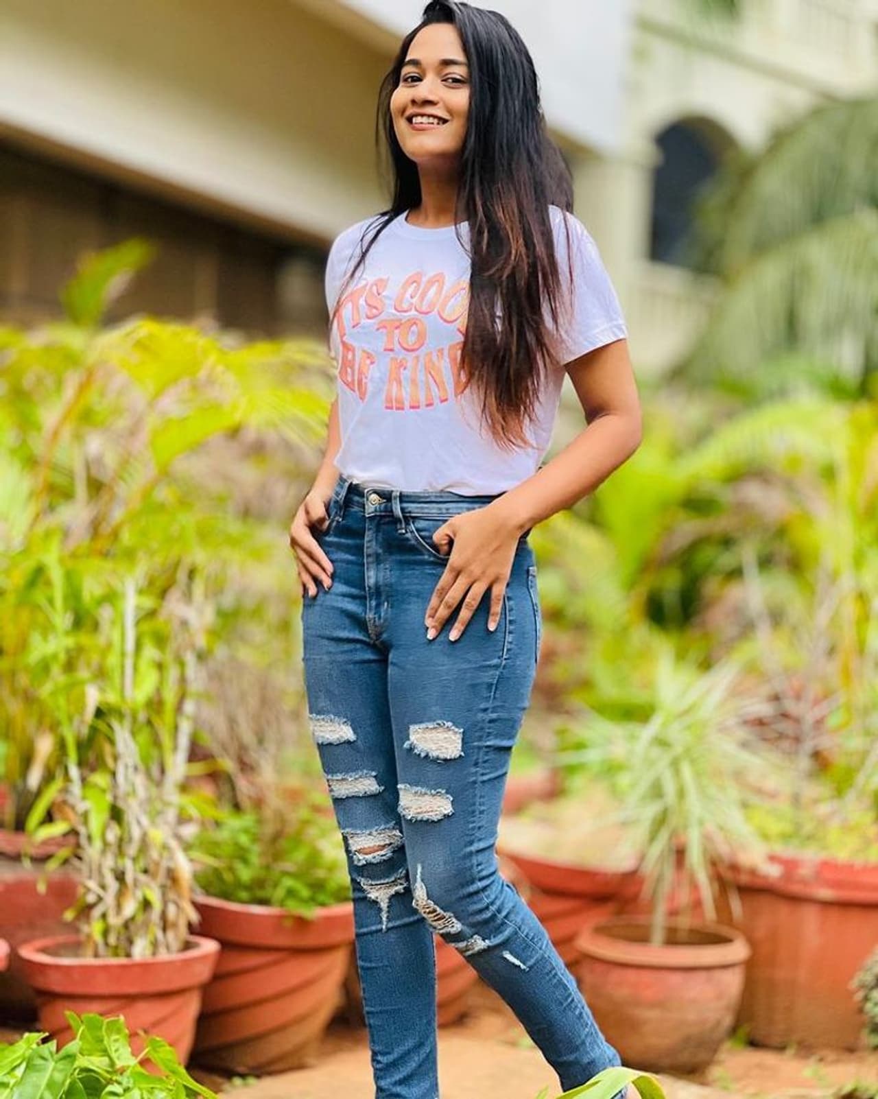அந்த வகையில் தற்போது படு மாடர்ன் பெண்ணாக மாறி, ஜீன்ஸ் - டீ ஷர்ட் என கலக்கலாக இவர் வெளியிட்டுள்ள புகைப்படங்களுக்கு ரசிகர்கள் மத்தியில் நல்ல வரவேற்பு கிடைத்து வருகிறது.