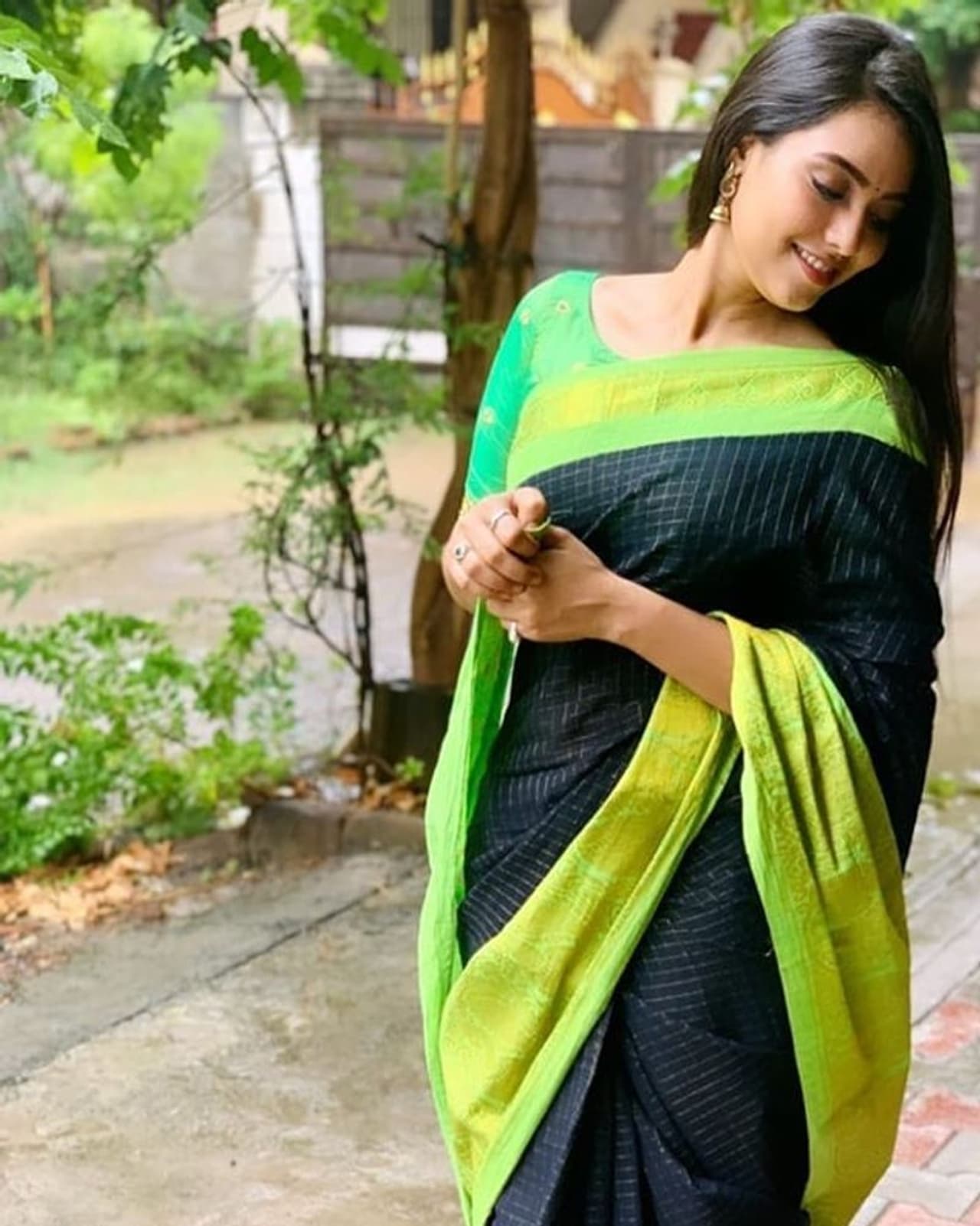 புடவையில் அம்சமாக இருக்கும் பவித்ரா