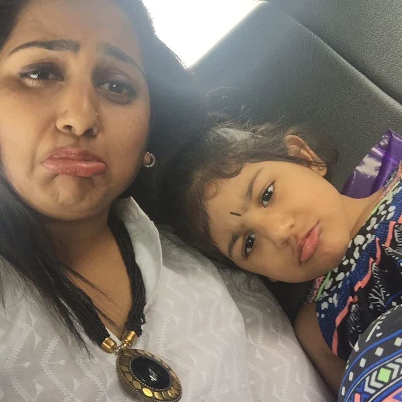 அம்மா காயத்ரியுடன் நின்று போஸ் கொடுக்கும் குட்டி தேவதை