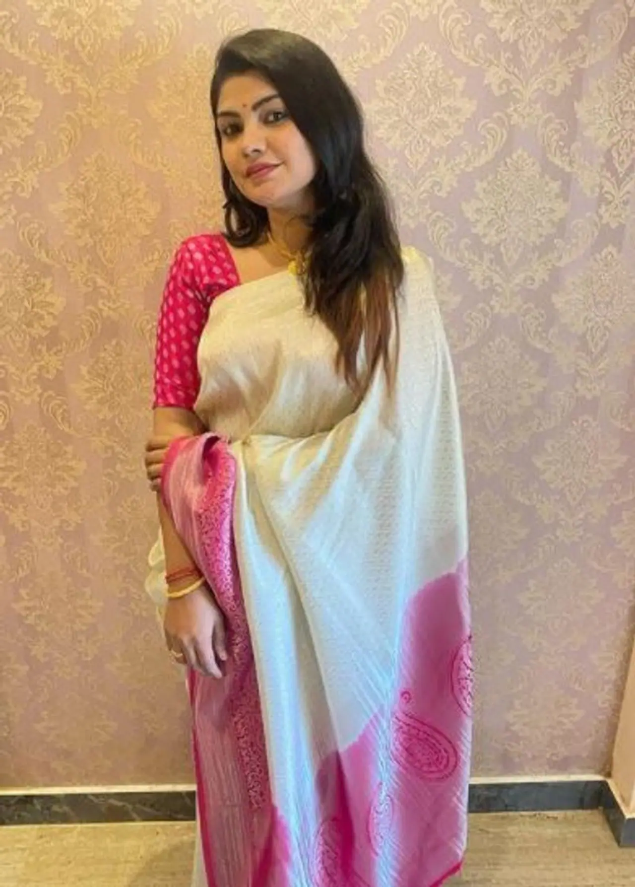 <p>சேலையில் ஆண் ஒருவருடன் நின்று கொண்டிருக்கும் புகைப்படத்தை வெளியிட்டு அவர் தான் எல்லாம் என குறிப்பிட்டுள்ளார். இதை பார்த்து ரசிகர்கள் பலரும் இவருக்கு தங்களது வாழ்த்துக்களை தெரிவித்து வருகிறார்கள். அந்த புகைப்படம் இதோ...</p>
