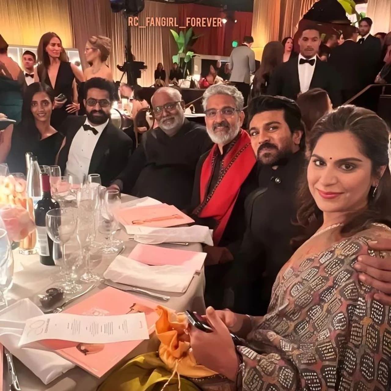 இதற்கான விருதுவிழா, லாஸ்ட் ஏஞ்சல்ஸில் நடைபெற்ற நிலையில்.... இதனை RRR குடும்பமே சென்று பெருமையோடு பெற்றுள்ளனர். கோல்டன் குளோப் விருது விழாவில், நடிகர் ராம்சரண் மற்றும் அவருடைய மனைவி உபாசனா, ஜூனியர் என்டிஆர் அவருடைய மனைவி லட்சுமி பிரணதி, இயக்குனர் ராஜமவுலி மற்றும் அவருடைய மனைவி ரமா, மற்றும் இசையமைப்பாளர் கீரவாணி ஆகியோர் கலந்து கொண்ட புகைப்படங்கள் சமூக வலைத்தளத்தில் வைரலாகி வருகிறது.
