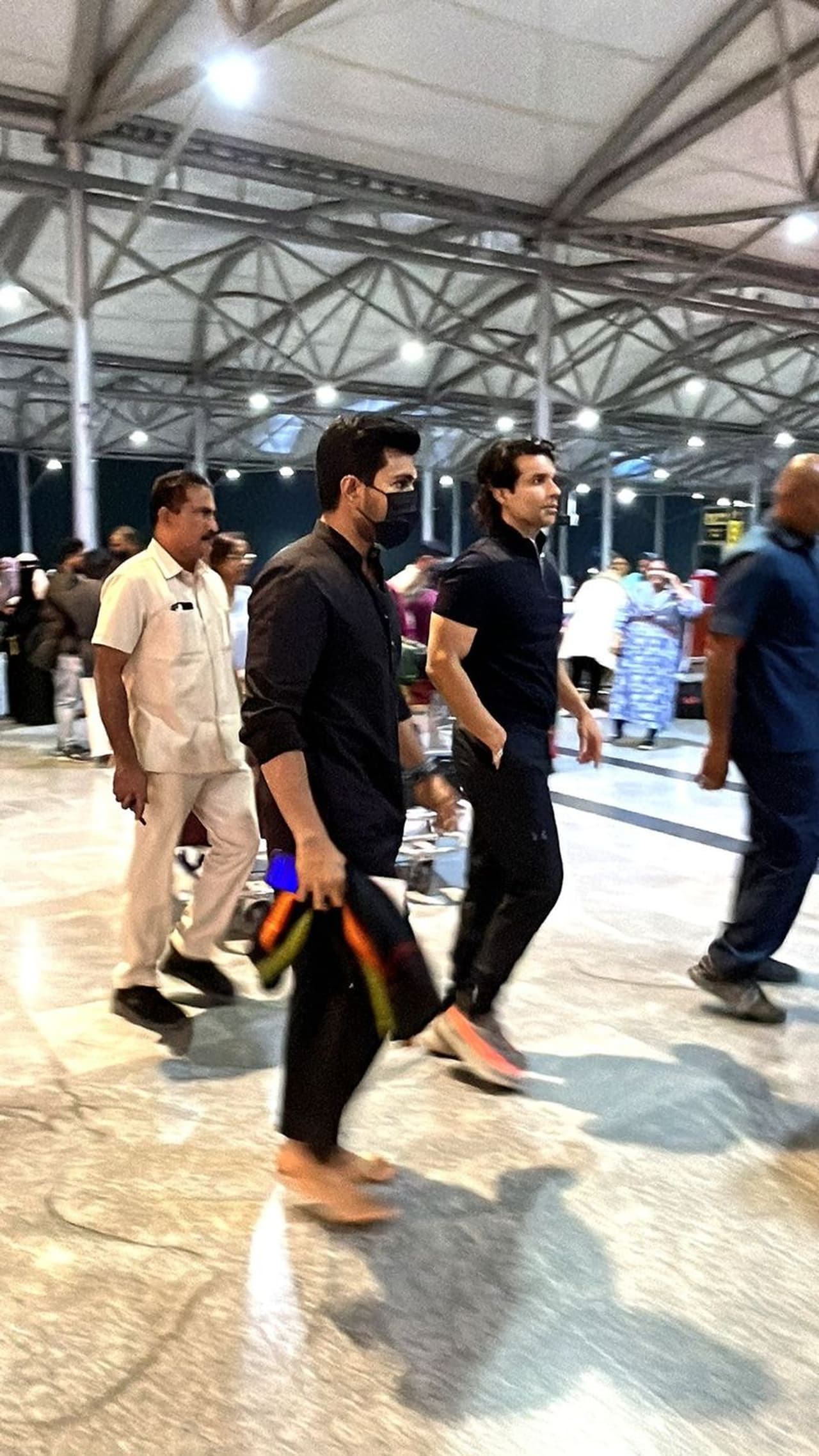 ஐயப்பனுக்கு மாலை போட்டுள்ள ராம்சரண், கருப்பு நிற ஆடை, கையில் துண்டுடன் காலில் செருப்பு எதுவும் அணியாமல் விமான நிலையத்திற்கு வந்தபோது எடுத்த புகைப்படங்கள் வைரலாகி வருகின்றன.