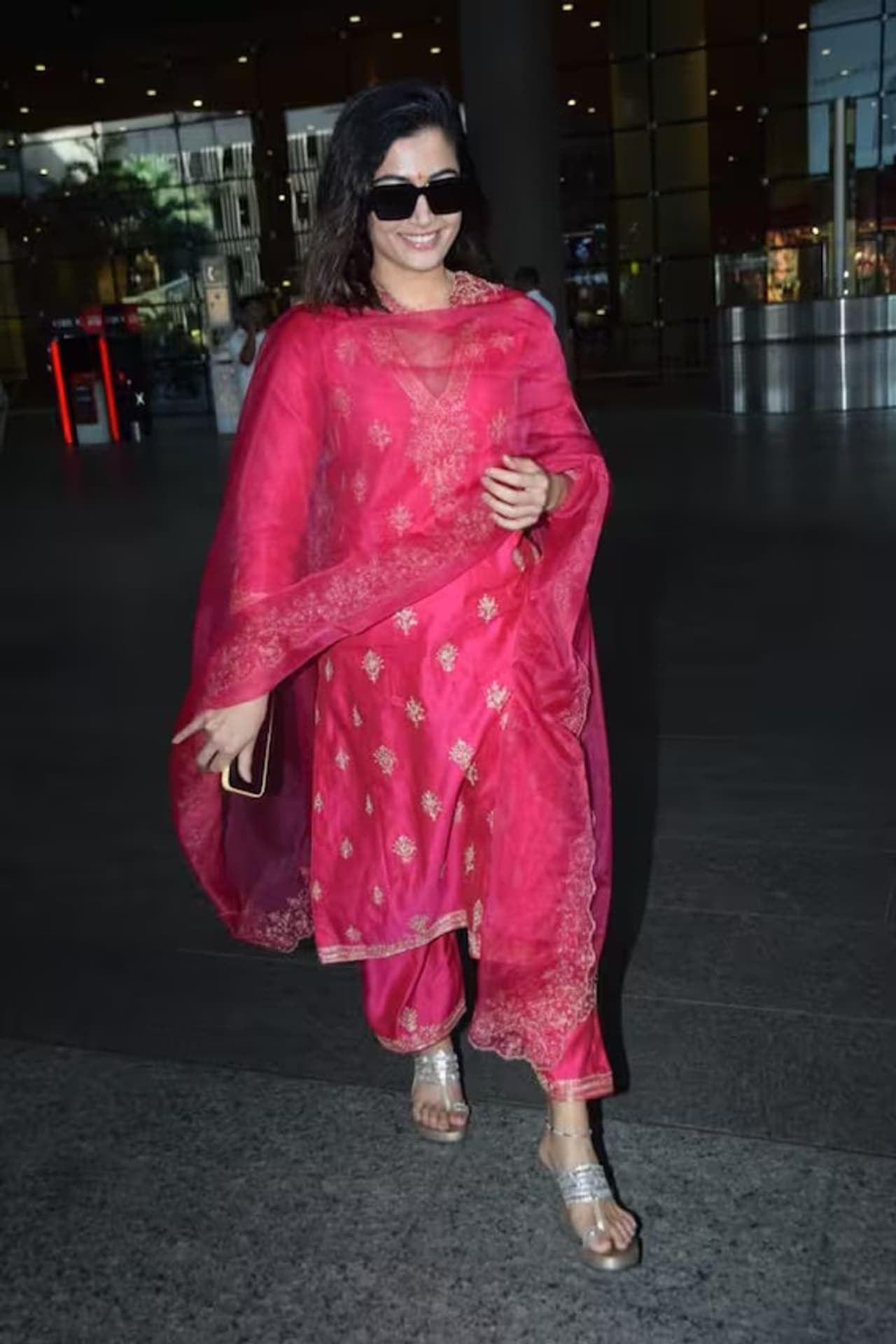 மெஜந்தா நிற சல்வாரில், செம்ம ஸ்டைலிஷாக ஏர்போர்ட்டில் வலம் வந்து அனைவரது கவனத்தையும் ஈர்த்தார் ராஷ்மிகா மந்தனா.