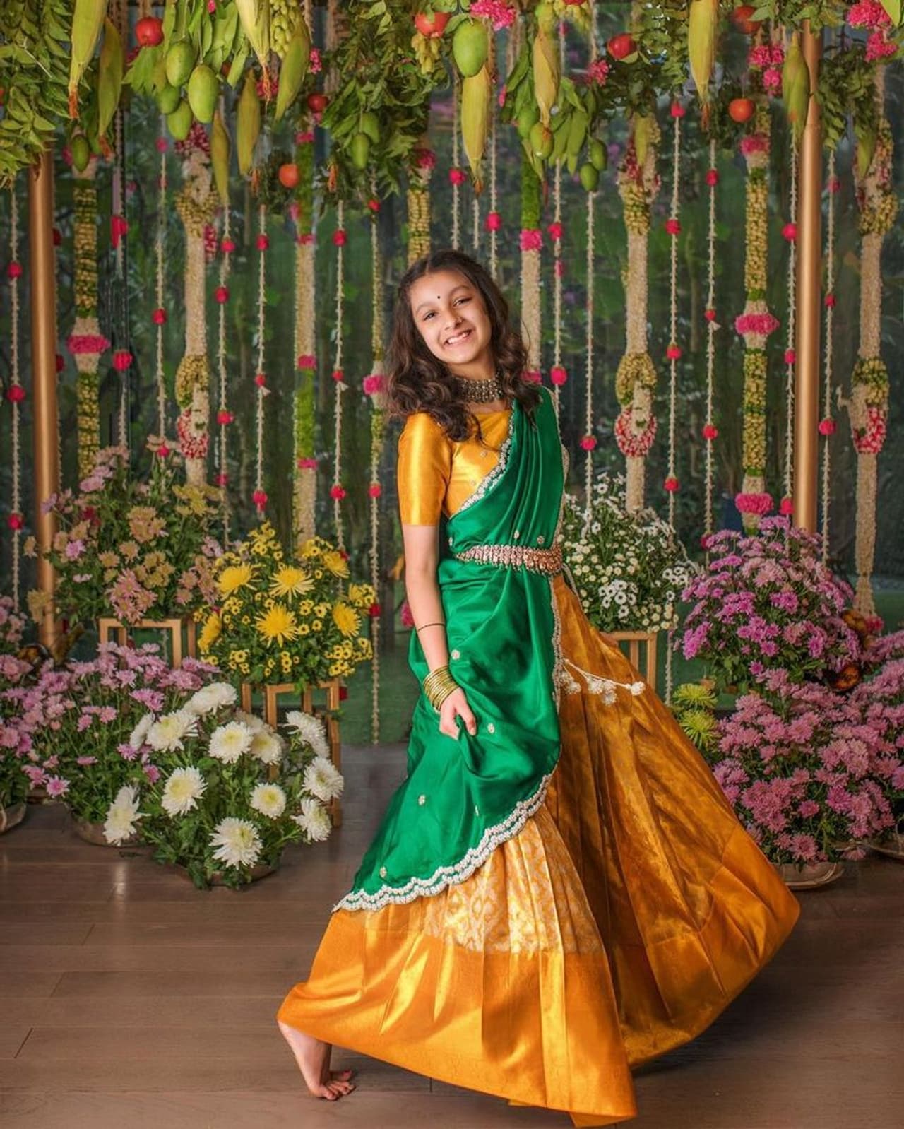 நடிகர் மகேஷ் பாபுவின் 10 வயது மகளா இது? பாவாடை தாவணியில் ஜொலிக்கும் சித்தாரா..! யுகாதி ஸ்பெஷல் போட்டோ ஷூட்!