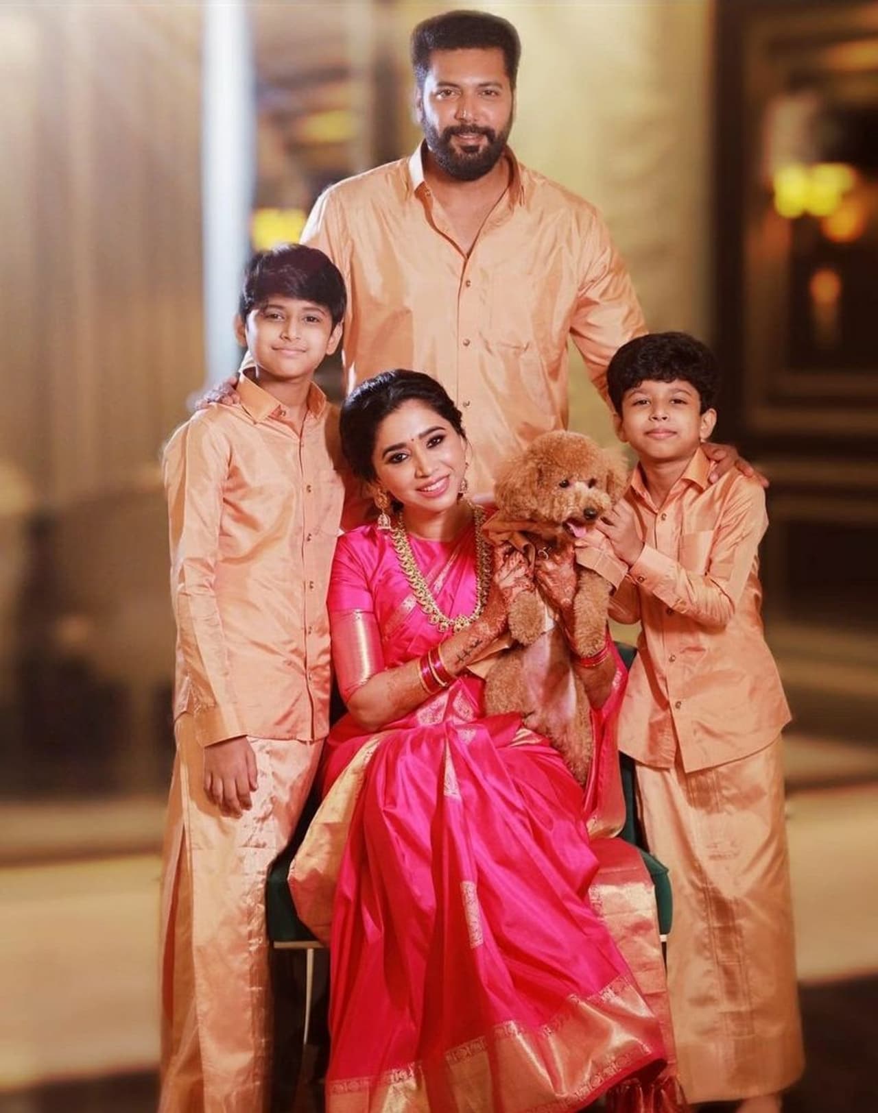 நடிகர் ஜெயம் ரவி தனது மனைவி ஆர்த்தி மற்றும் மகன்களுடன் மேட்சிங் மேட்சிங் உடை அணிந்து இனிதே பொங்கல் பண்டிகையை கொண்டாடி உள்ளார்.
