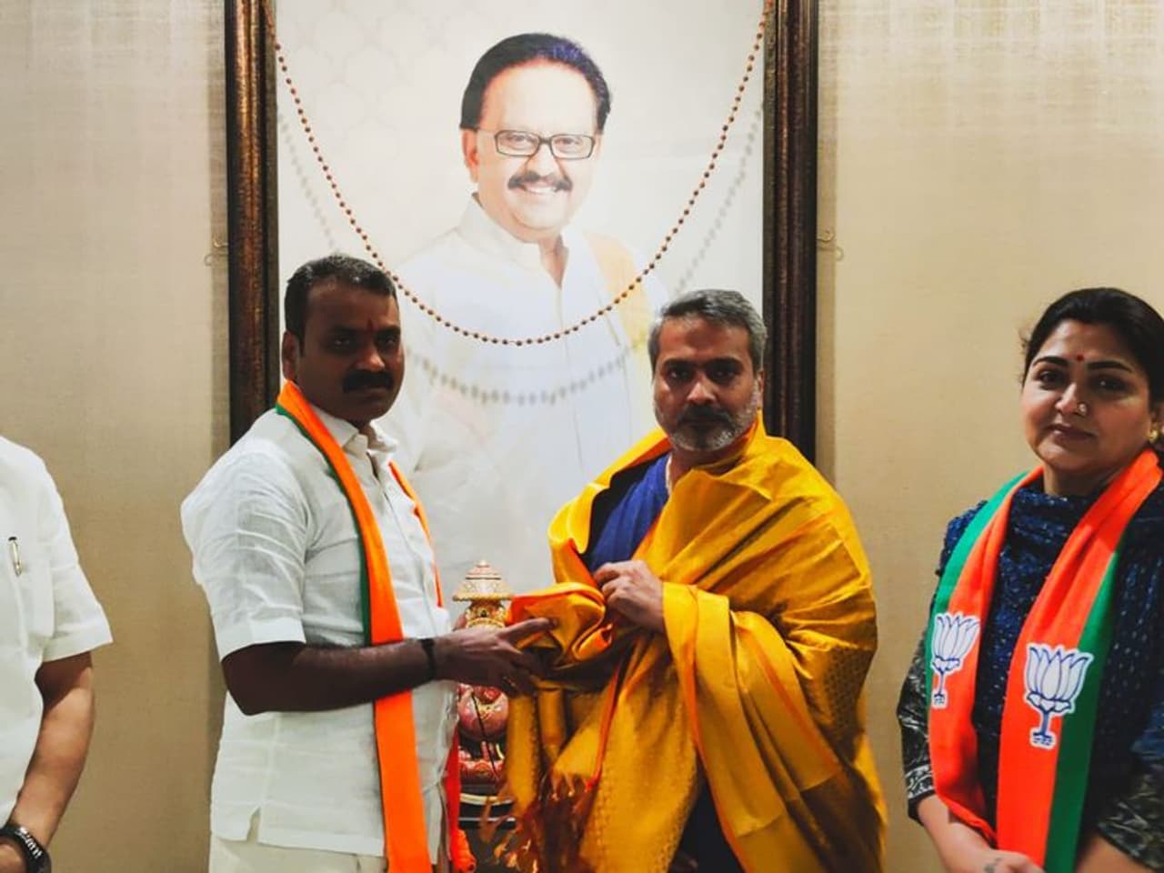 இதற்க்கு வாழ்த்து தெரிவிக்கும் விதமாக தமிழக பாமக தலைவர் எல்.முருகன், மாறும் பாஜக பிரமுகர் நடிகை குஷ்பு ஆகியோர், எஸ்.பி.பி மனைவி சாவித்திரி, மகன் S.P.B.சரண் ஆகியோர்களை நேரில் சந்தித்து, பொன்னாடை அணிவித்து வாழ்த்து தெரிவித்துள்ளனர்.
