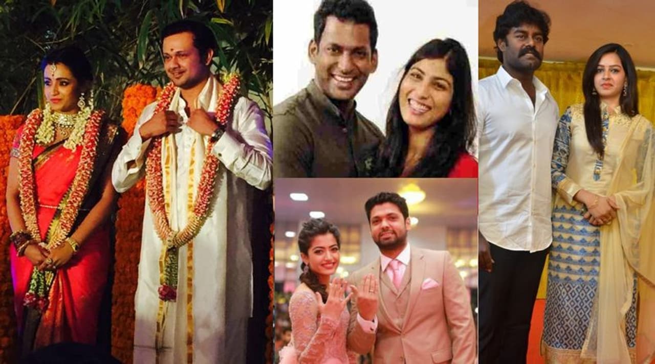தமிழ் திரையுலகை பொறுத்தவரை ரீல் ஜோடியாக இருந்து ரியல் ஜோடியாக மாறி காதல் திருமணம் செய்துகொண்ட பிரபலங்கள் ஏராளமாக உள்ளனர். அஜித் - ஷாலினி தொடங்கி, சூர்யா - ஜோதிகா, சுந்தர் சி - குஷ்பு, ராதிகா - சரத்குமார், சினேகா - பிரசன்னா, கருணாஸ் - கிரேஸ், கவுதம் கார்த்திக் - மஞ்சிமா என இந்த பட்டியல் நீண்டு கொண்டே செல்கிறது. இது ஒருபுறம் இருக்க சில நடிகர், நடிகைகள் நிச்சயதார்த்தத்தை தடபுடலாக நடத்திவிட்டு திருமணத்தை பாதியிலேயே நிறுத்திய சம்பவங்களும் அரங்கேறி இருக்கின்றன. அதைப்பற்றி இந்த தொகுப்பில் பார்க்கலாம்.