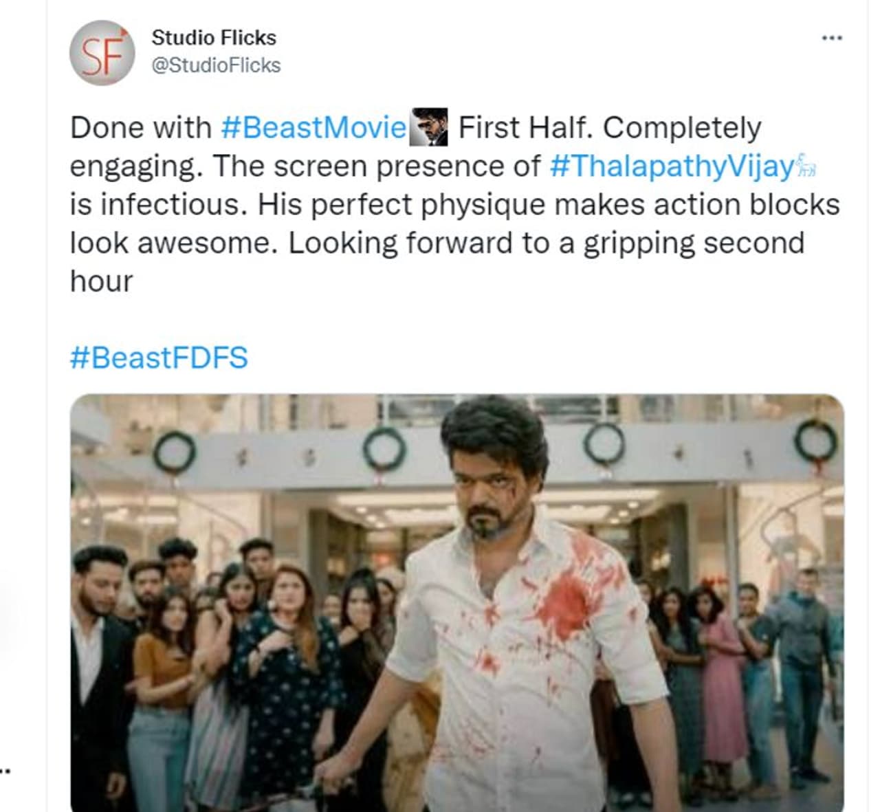 - Beast Twitter Review : பீஸ்ட் தேறுமா..? தேறாதா..? முதல் பாதி படம் பற்றிய ட்விட்டர் விமர்சனங்கள்..!