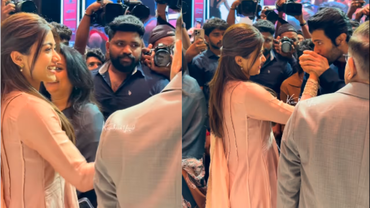 இந்த நிகழ்ச்சிக்கு நடிகர் விஜய் தேவரகொண்டாவும் வந்திருந்தார். பிரபலங்கள், படக்குழுவினர், ஊடகங்கள் மத்தியில் பேசிக்கொண்டிருந்த ராஷ்மிகா மந்தனாவிடம் வந்த விஜய் தேவரகொண்டா, அவரது கைகளைப் பிடித்து முத்தம் கொடுத்தார். தேவரகொண்டா வந்ததும் ராஷ்மிகா மந்தனாவின் முகத்தில் மகிழ்ச்சி இரட்டிப்பானது. விஜய் தேவரகொண்டாவை வரவேற்க ராஷ்மிகா கை கொடுத்தார். ஆனால் விஜய் தேவரகொண்டா அவரது கைகளைப் பிடித்து முத்தமிட்டார். இதனால் ராஷ்மிகா மந்தனா வெட்கத்தில் சிவந்து போனார். அப்போது சுற்றியிருந்த ஊடகங்களின் கேமராக்கள் புகைப்படம் மற்றும் வீடியோ எடுத்தன.