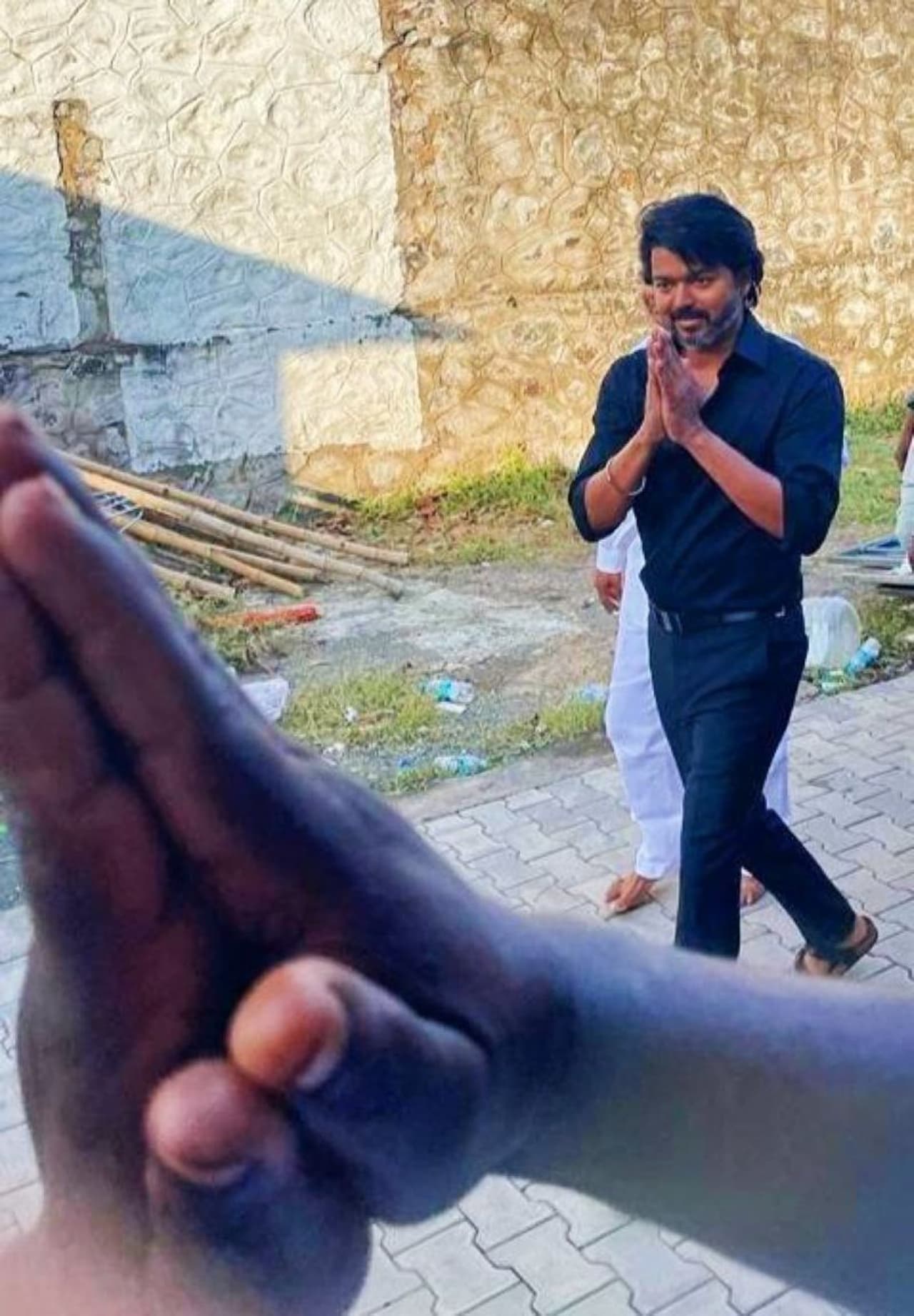 மிகவும் ஸ்டைலிஷான 'வாரிசு' பட லுக்கில் வந்திறங்கிய விஜய்... சுமார் மூன்று மணிநேரம் ரசிகர்களுடன் கலந்துரையாடினார். இந்த சந்திப்பிற்கு விஜய் வந்த போது எடுக்கப்பட்ட புகைப்படங்கள் மற்றும் விஜய் ஒரு ரசிகரை கையில் ஏந்தியபடி எடுத்து கொண்ட புகைப்படங்கள் சமூக வலைத்தளத்தில் வைரலானது.