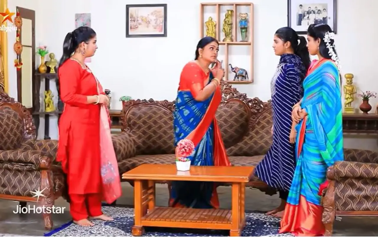 அடுத்த காட்சியாக டான்ஸ் போட்டிக்கு ராஜீ பயிற்சி செய்கிறார். அப்போது கோமதி வந்து கதிரை பற்றி கேட்க, அவரும் செந்தில் மாமாவும் ஷாப்பிங் போயிருக்காங்க. டிரெஸ் எடுக்காமல் வந்து விட்டார்கள். மேலும், எனக்கும் டான்ஸ் டிரெஸ் எடுக்க போயிருக்காங்க என்று கூறுகிறார். அந்த நேரம் பார்த்து மீனா வந்து அழ ஆரம்பிக்கிறார். என் மீது கோபம் இல்லையா அப்படி இப்படி என்று பேசுகிறார். என்னுடைய அக்கா நீங்கள். உங்கள் மீது எனக்கு கோபம் இல்லை என்று ராஜீ கூற அடுத்த சீனாக டான்ஸ் நிகழ்ச்சி காட்டப்படுகிறது.