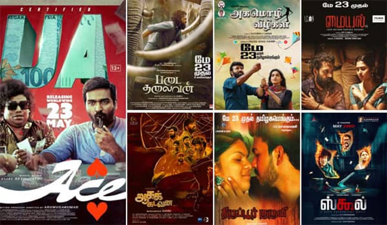 தமிழ் ரசிகர்களுக்கு ஒவ்வொரு வெள்ளிக்கிழமை என்றாலே குஷி தான் புதுப்புதுப்படங்கள் திரையரங்கில் வெளியாகும், குறிப்பாக சனி மற்றும் ஞாயிறு விடுமுறையை குறிவைத்து படங்கள் வெளியிடப்படவுள்ளது. அந்த வகையில் கடந்த வாரம் கடந்த வாரம் சூரியின் மாமன், சந்தானம் நடித்த டிடி நெக்ஸ்ட் லெவல் போன்ற இரண்டு முக்கிய படங்கள் ரிலீஸ் செய்யப்பட்டது. இந்த வாரம் வெள்ளிக்கிழமை அதாவது நாளை ஒரே நாளில் 8 திரைப்படங்கள் வெளியாகவுள்ளது. ஏஸ், நரிவேட்டை, மையல், படை தலைவன் , ஸ்கூல், அக மொழி விதிகள், ஆகக் கடவன, திருப்பூர் குருவி போன்ற படங்கள் ஆகும்.
