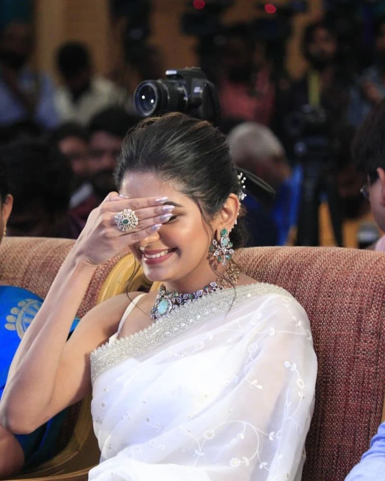 - 'விருமன்' பிரஸ் மீட்டிற்கு... ஸ்லீவ் லேஸ் ஜாக்கெட்டில் செம்ம ஹாட்டாக வெள்ளை நிற சேலையில் வந்த அதிதி ஷங்கர்!