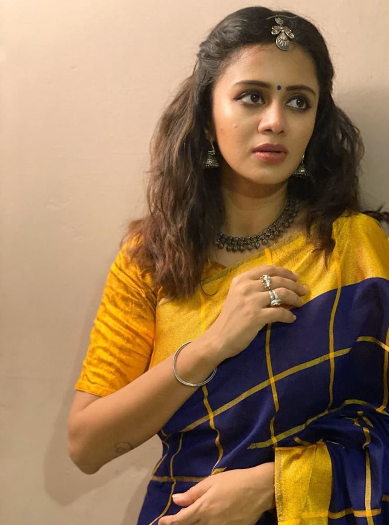சட்டை புடவையென வித்தியாசமான போஸில் விளையாட்டு காட்டும் தொகுப்பாளினி அஞ்சனா ரங்கன்....!