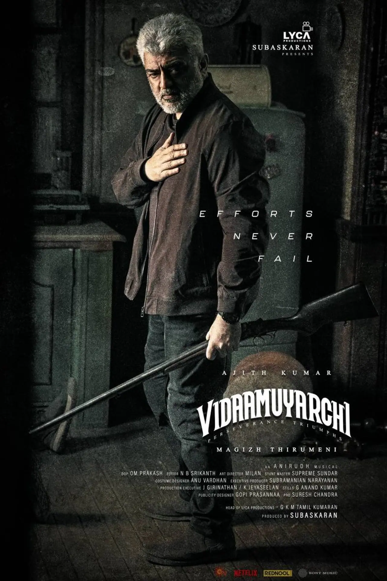மகிழ் திருமேனி எழுதி இயக்கி வரும் இந்த படம் அஜித், அர்ஜுன், த்ரிஷா, ரெஜினா கசாண்ட்ரா, நிகில் சித்தார்த்தா உள்ளிட்ட பலர் நடிக்கின்றனர். இந்திய தமிழ் அதிரடி திரில்லர் திரைப்படமாகும். தல அஜித் குமார் நடிக்கும் இப்படத்தில் அர்ஜுன் சர்ஜா, த்ரிஷா கிருஷ்ணன், ரெஜினா கசாண்ட்ரா, ஆரவ், நிகில் சித்தார்த்தா உள்ளிட்ட பலர் நடித்துள்ளனர்.