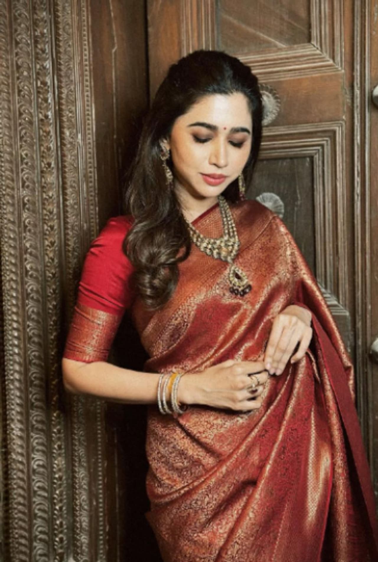 பிரபல நடிகர் ஜெயம் ரவியின் மனைவி ஆர்த்தி ரவி தனது இன்ஸ்டாகிராம் பக்கத்தில் தனக்கு பிடித்த பட்டு சேலை உடுத்தி போட்டோ சூட் ஒன்றை வெளியிட்டுள்ளார்.