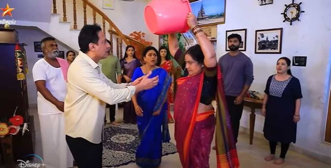 இதை தொடர்ந்து ஈஸ்வரி விடுதலை செய்யப்பட, பாக்கியா வீட்டிற்கு தன்னுடைய அம்மாவை பார்க்க வரும் கோபிக்கு அங்கு அதிர்ச்சி காத்திருக்கிறது. ஈஸ்வரி, சந்தித்து அம்மா என்னை மன்னித்துவிடுங்கள் என கோபி கூற, ஏய் விடுடா என ஆத்திரத்தோடு எழுந்திருக்கும் ஈஸ்வரி, எனக்கும் உன்னக்கு உள்ள தாய் - பிள்ளை என்கிற உறவு முடிஞ்சு போச்சு. எனக்கு ஒரே ஒரு மகள் தான். அது பாக்கியா தான் என கூறுகிறார். பின்னர் கோபிநாத் என்கிற ஒருத்தன் என்னுடைய வயித்துல பிறக்கவே இல்லை. இன்னையோடு உன்னை நான் தலை முழுகிறேன் என கூறி நடு வீட்டில் நின்று தலையில் தண்ணீரை ஊற்றுகிறார். இந்த பரபரப்பான தருணம் குறித்த புரோமோ தான் வெளியாகியுள்ளது.