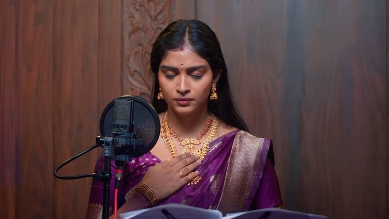 மறுபக்கம் கோகிலா தீபாவுக்கு தர்மலிங்கம் ஹாஸ்பிடலில் இருக்கும் விஷயத்தை சொல்லி அவள் பாடுவதை தடுத்து நிறுத்த வேண்டும் என்று பிளான் போட்டு ஸ்டூடியோவிற்கு கிளம்பி வர. அவளை உள்ளே விட மறுக்கின்றனர். அடுத்து தீபா எந்தவொரு தடங்கலும் இல்லாமல் பாடி முடிக்கிறாள். ரக்சன் பாடியதற்கான பணத்தை செக்காக கொடுக்க தீபா மிகுந்த சந்தோசம் அடைகிறாள்.