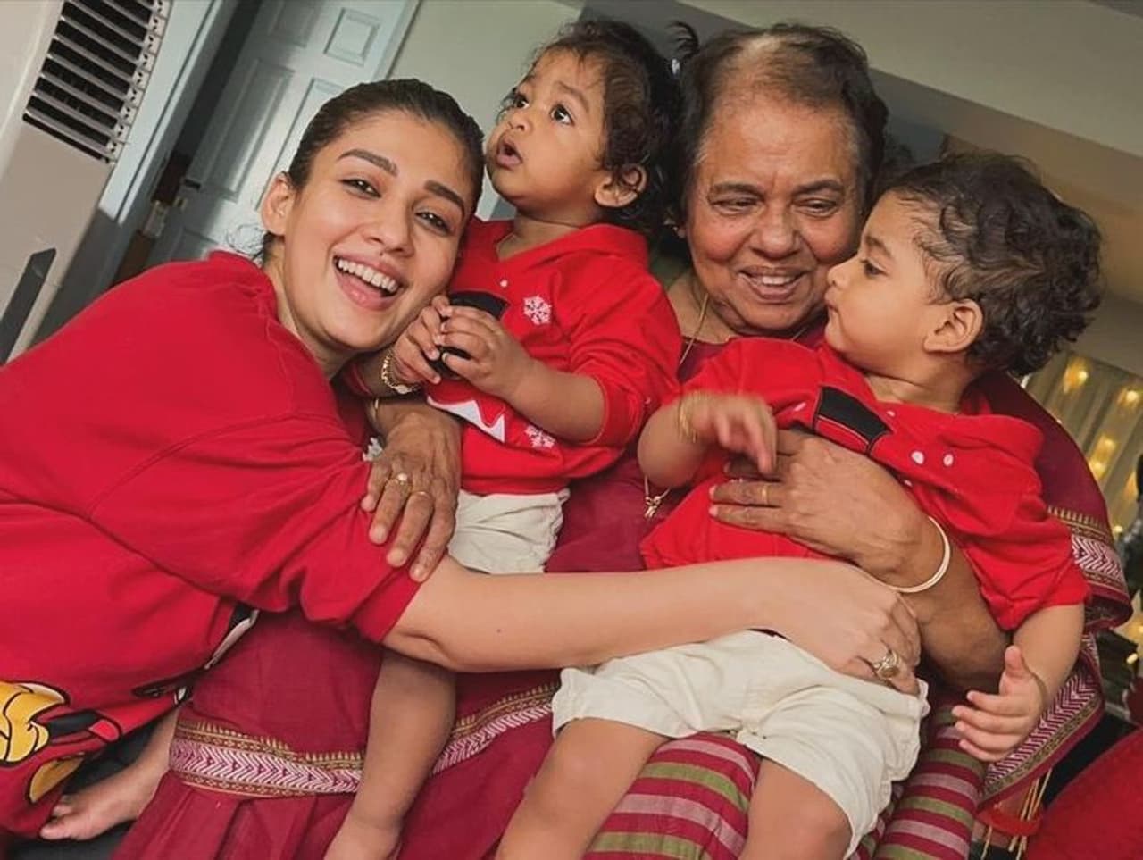 கடந்த 2022 ஆம் ஆண்டு பிரபல இயக்குனர் விக்னேஷ் சிவனை மணந்து கொண்ட பிரபல நடிகை நயன்தாரா வாடகை தாய் மூலம் உயிர் மற்றும் உலகம் என்கின்ற இரு ஆண் குழந்தைகளை பெற்றெடுத்தது அனைவரும் அறிந்ததே. இந்நிலையில் தனது தாய் மற்றும் கணவர் விக்கி மகன்கள் உயிர் மற்றும் உலகம் ஆகிய நால்வருடன் இணைந்து கிறிஸ்துமஸ் பண்டிகை அவர் கொண்டாடியுள்ளார்.