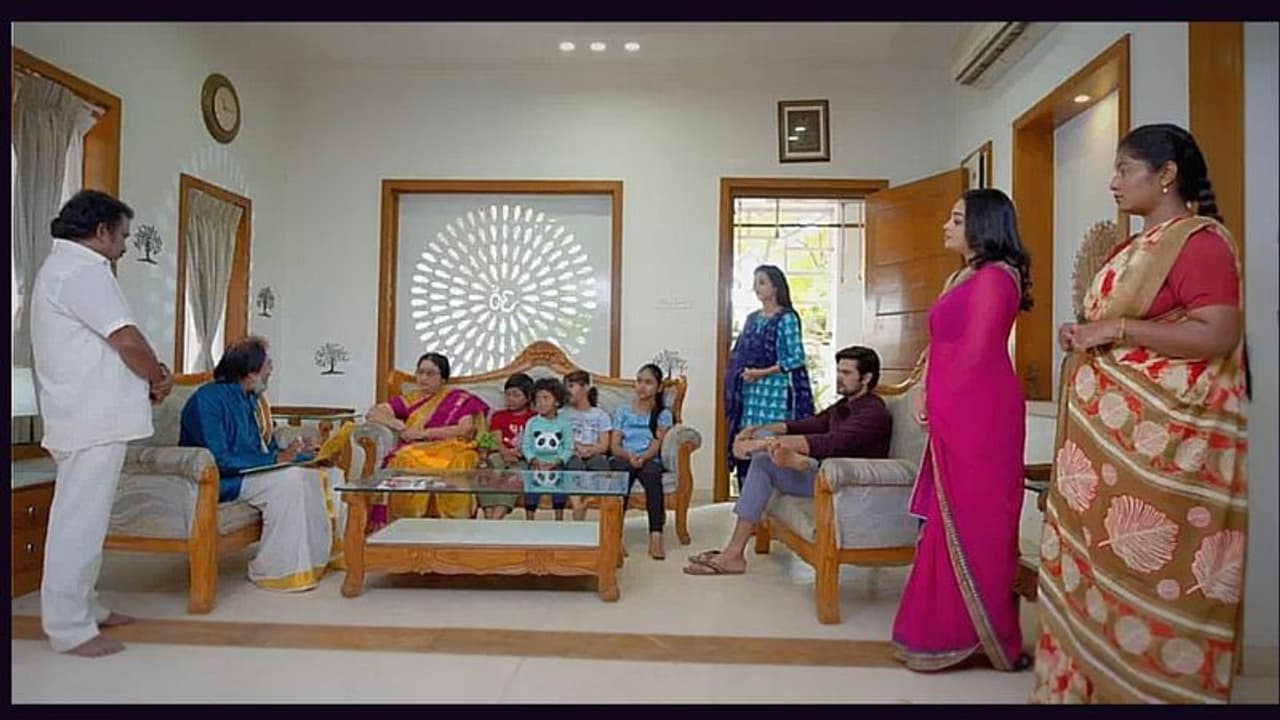மறுபக்கம் செல்வி மனோகரி சொன்னது போல நெய்யை கொண்டு வந்து இந்துமதி போட்டோ மீது ஊற்றி விடுகிறாள். நெய் என்பதால் கை வழுக்கி விட்டதாக பொய் சொல்லி சமாளிக்கிறாள். அதன் பிறகு சுடர் உள்ள என்னுடைய இந்துமதி பதற்றம் அடைய சுடரை அவளைப் பார்த்த நீ மேல போய் டிரஸ் மாத்திட்டு ரெடியாகிட்டு வா என்று சொல்லி அனுப்பி வைக்க ரூமுக்கு வந்த சுடர் எழில் கொடுத்த புடவையை கட்டிக் கொள்கிறாள்.