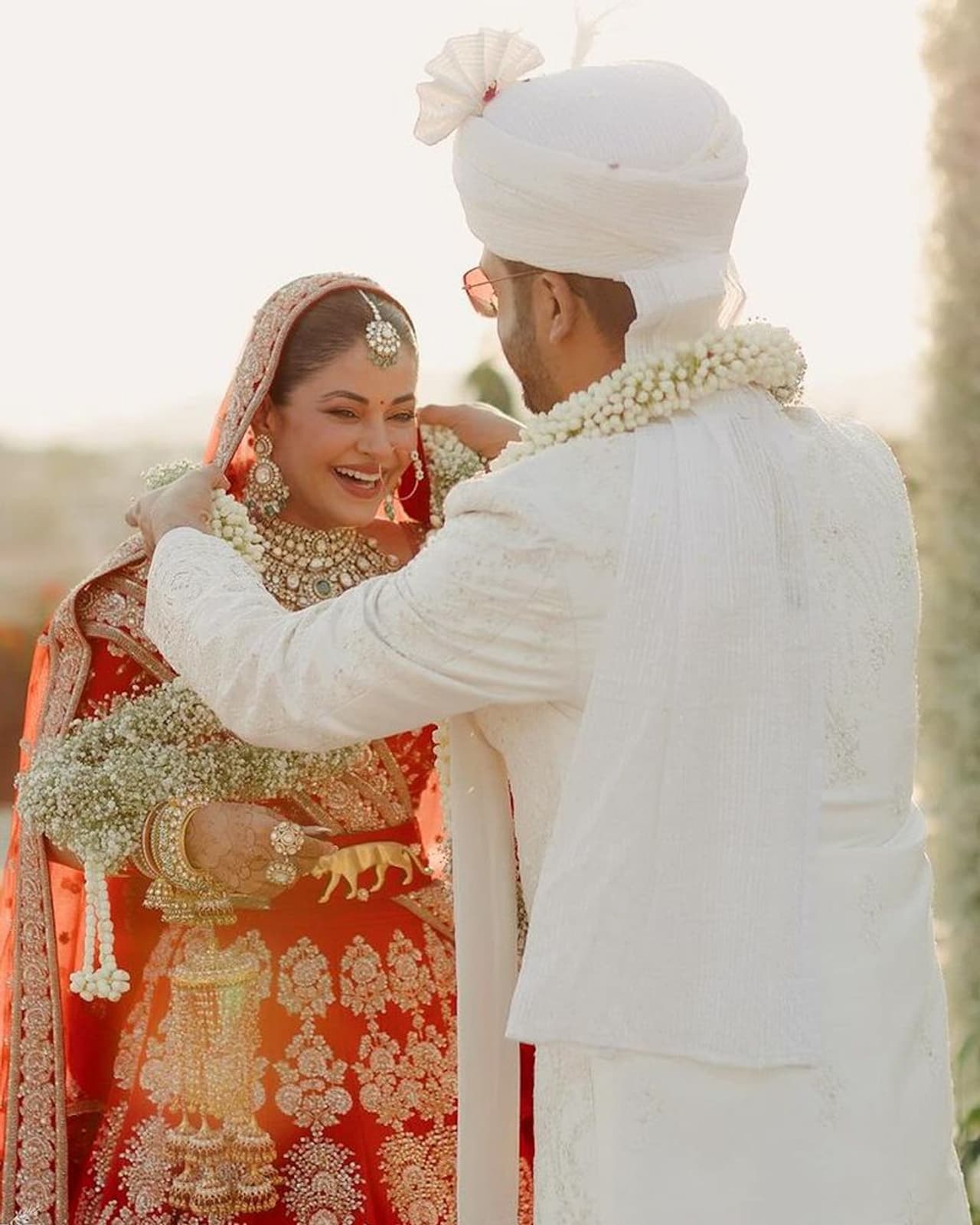 நடிகை நிலா, பிரபல டிசைனர் சப்யசாச்சி உருவாக்கிய சிவப்பு நிற லெஹங்காவில் அழகு தேவதை போல் இருக்கிறார். இவரின் காதலர் ரக்ஷித் வெள்ளை நிற ஷர்வானி மற்றும் அதற்கு ஏற்றது போல் ஆபரணங்களும் அணிந்துள்ளார். திருமண புகைப்படங்களை நடிகை நிலா வெளியிட, ரசிகர்கள் தங்களின் இதய பூர்வமான வாழ்த்துக்களை தெரிவித்து வருகிறார்கள்.
