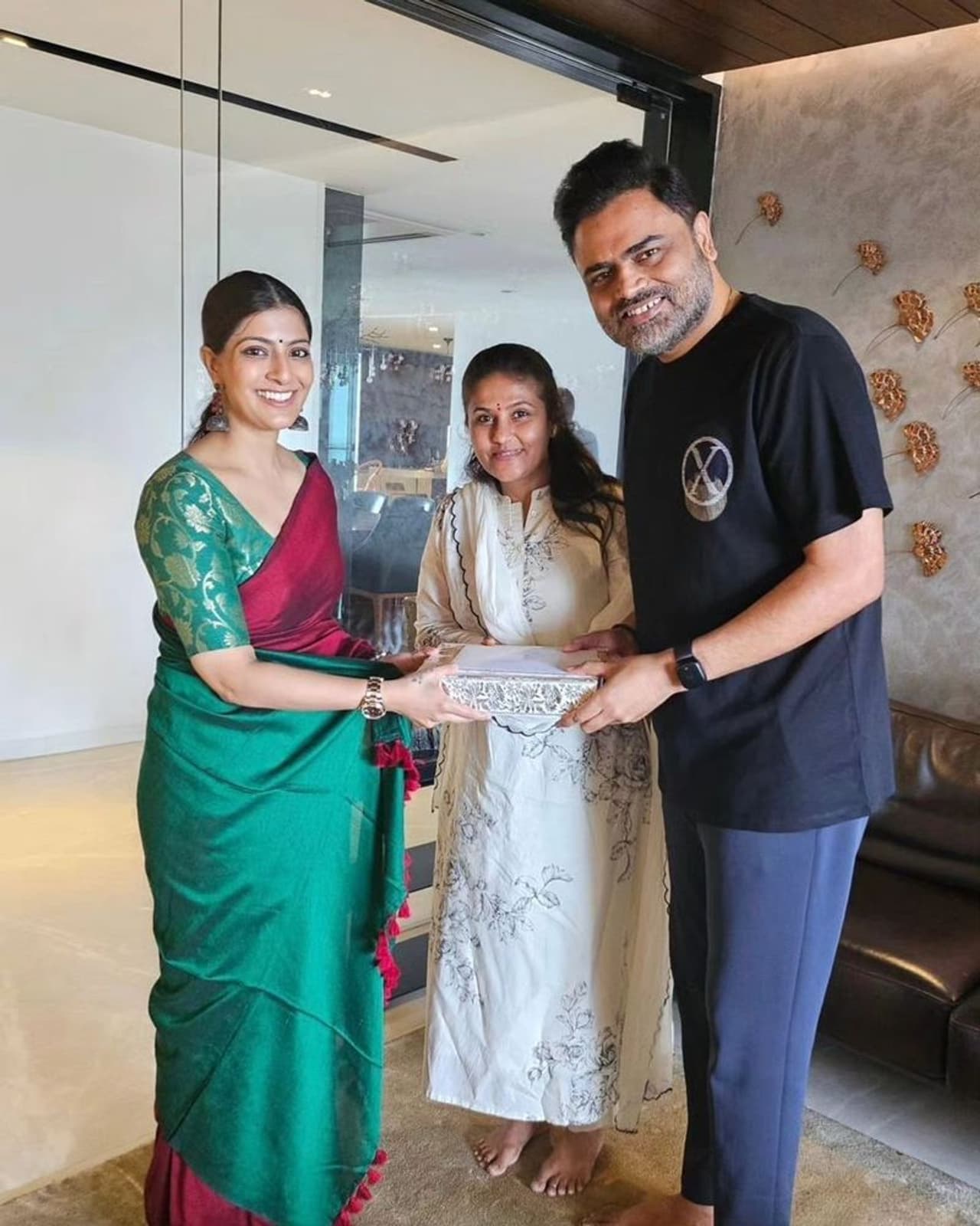 திருமணத்திற்கு இன்னும் சில தினங்களே உள்ள நிலையில், குடும்பத்தினர் திருமண பத்திரிக்கை வைப்பதில் பிசியாகி உள்ளனர். அந்த வகையில் கோலிவுட் திரையுலக நட்சத்திரங்களான ரஜினி, கமல், உள்ளிட்ட நடிகர்கள், இயக்குனர் ஆகியோர்க்கு ஏற்கனவே அழைப்பு விடுத்த வரு தற்போது தெலுங்கு மற்றும் கன்னட நடிகர்களுக்கு பத்திரிக்கை வைத்து வருகிறார். நடிகர் சுதீப், ரவி தேஜா, இயக்குனர் வம்சி ஆகியோருக்கு அழைப்பு விடுத்த போது எடுக்கப்பட்ட போட்டோஸ் வைரலாகி வருகிறது.