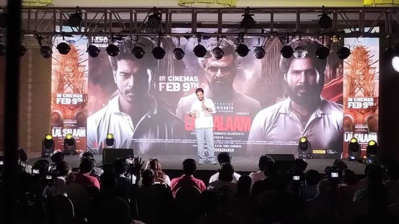 மேடைக்கு வந்து நின்றதும்... லால்சலாம் படத்தை லைகா நிறுவனம் மிக பிரம்மாண்டமாக எடுத்துள்ளனர். படத்தை ரெட் ஜெயண்ட் நிறுவனம் வெளியிடுகிறது. அது என்னவோ தெரியவில்லை நான் நடிக்கும் படங்களை ரெட் ஜெயண்ட் வெளியிடுகிறது அதுவும் ஹிட் ஆகி விடுகிறது அந்த லக் எனக்கு உள்ளது. அதற்காக உதயநிதி ஸ்டாலினுக்கு நன்றி.