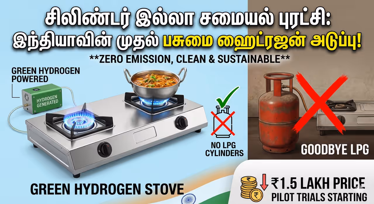 சிலிண்டர் இல்லா சமையல் புரட்சி: இந்தியாவின் முதல் பசுமை ஹைட்ரஜன் அடுப்பு அறிமுகம். புகையில்லா சமையல் மற்றும் பூஜ்ஜிய உமிழ்வு என சமையலறைத் தொழில்நுட்பத்தில் புதிய சகாப்தத்தை நோக்கிய ஒரு "மேட் இன் இந்தியா" முயற்சி.
