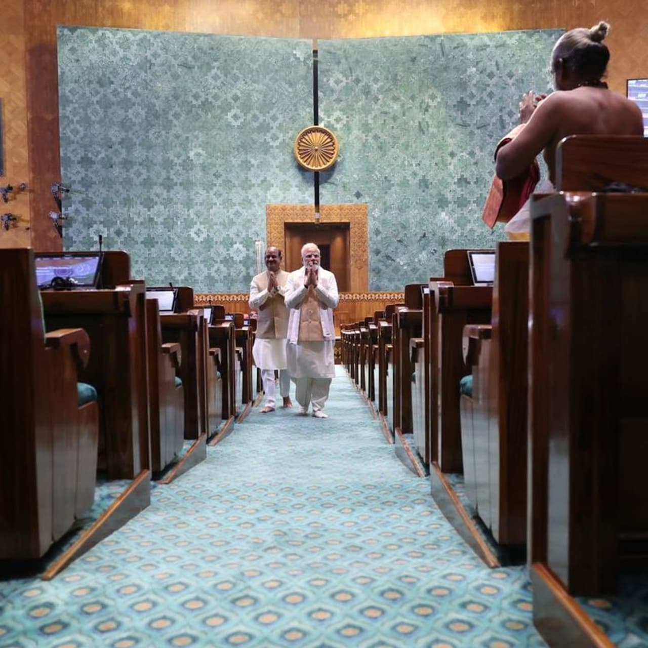 முன்னதாக நாடாளுமன்ற கட்டடத்திற்குள் வருகை தந்த பிரதமர் மோடியை மக்களவை சபாநாயகர் ஓம்பிர்லா உற்சாகமாக வரவேற்றார்.