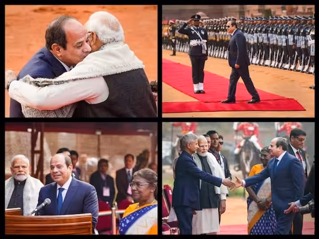 இந்த விழாவில் கலந்துகொள்ள எகிப்து நாட்டு அதிபர் அல் சிசி இந்தியா வந்துள்ளார். புதன்கிழமை தலைநகர் டெல்லிக்கு வந்த அவரை பிரதமர் நரேந்திர மோடியும், குடியரசுத் தலைவர் திரௌபதி முர்முவும் சந்திது வரவேற்றனர்.