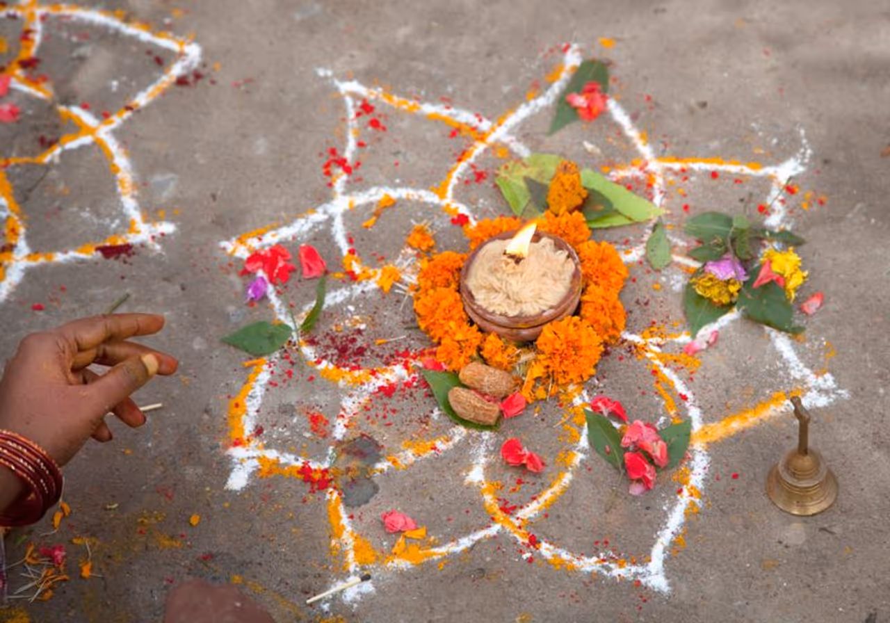 அழகியலில் முதன்மை பங்கு வகிக்கும் அரிசி கோலம், ஜீவகாருண்யத்தின் பிரதிபலிப்பு. இது மகிழ்ச்சியும் செழிப்பையும் குறிக்கிறது. வீடுகளின் மீது வரையப்படும் கோலம், பிரகாசமான காவி நிறம் ஆகியவை தீய மற்றும் விரும்பத்தகாத சக்திகள் வீட்டிற்குள் நுழைவதைத் தடுக்கும் என்று நம்பப்படுகிறது.
