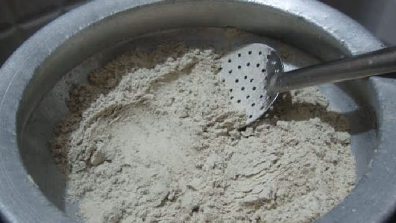 மாவை ஒரு பெரிய கடாயில் கொட்டி, அடுப்பில் வைத்து மிதமான சூட்டில் வைத்து வறுக்க வேண்டும். மாவை தொடர்ந்து கிளறிக்கொண்டே இருக்க வேண்டும். மாவின் தூள்கள் வெளியே தெரிக்க ஆரம்பித்தால் மாவில் உள்ள ஈரப்பதம் நீங்கி விட்டது என அர்த்தம். பின்னர், வேறொரு பாத்திரத்தில் அந்த மாவை கொட்டி நன்றாக ஆற வைக்க வேண்டும். பிறகு சல்லடையில் அந்த மாவை கொட்டி நைசாக சலித்து கொள்ள வேண்டும்.