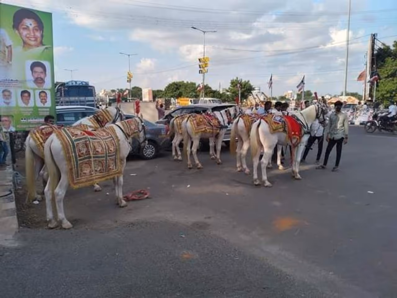 மணமக்களை வரவேற்க அலங்காரத்தோடு வண்டிகளில் பூட்டப்பட்ட குதிரைகள்... அமோகமாக நடந்த திருமண ஏற்பாடுகள்...