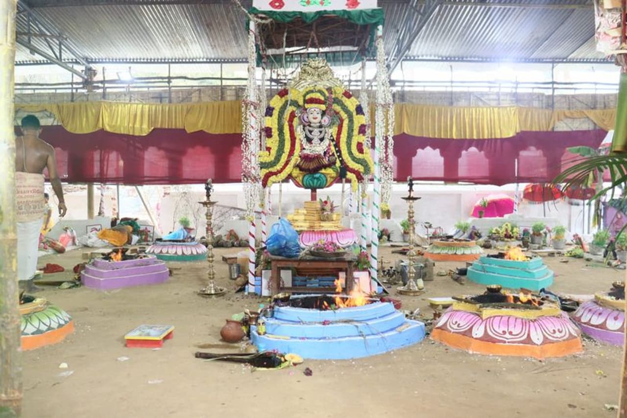 மறுநாள் சிறப்பு அபிஷேக ஆராதனை, அம்பாள் யதாஸ்தானம் வந்து அருளுதல் நிகழ்ச்சி நடந்தது. கடந்த நாலாம் தேதி யாகசாலை நிர்மாணிக்கப்பட்டு பூஜைகள் நடந்து வந்தது. நேற்று முன்தினம் காலை 6ம் கால மகா பூர்ணாஹூதி, கஜ பூஜை, சிறப்பு பூஜைகள் நடந்து கடங்கள் புறப்பட்டு கோயிலை வந்தடைந்தது.