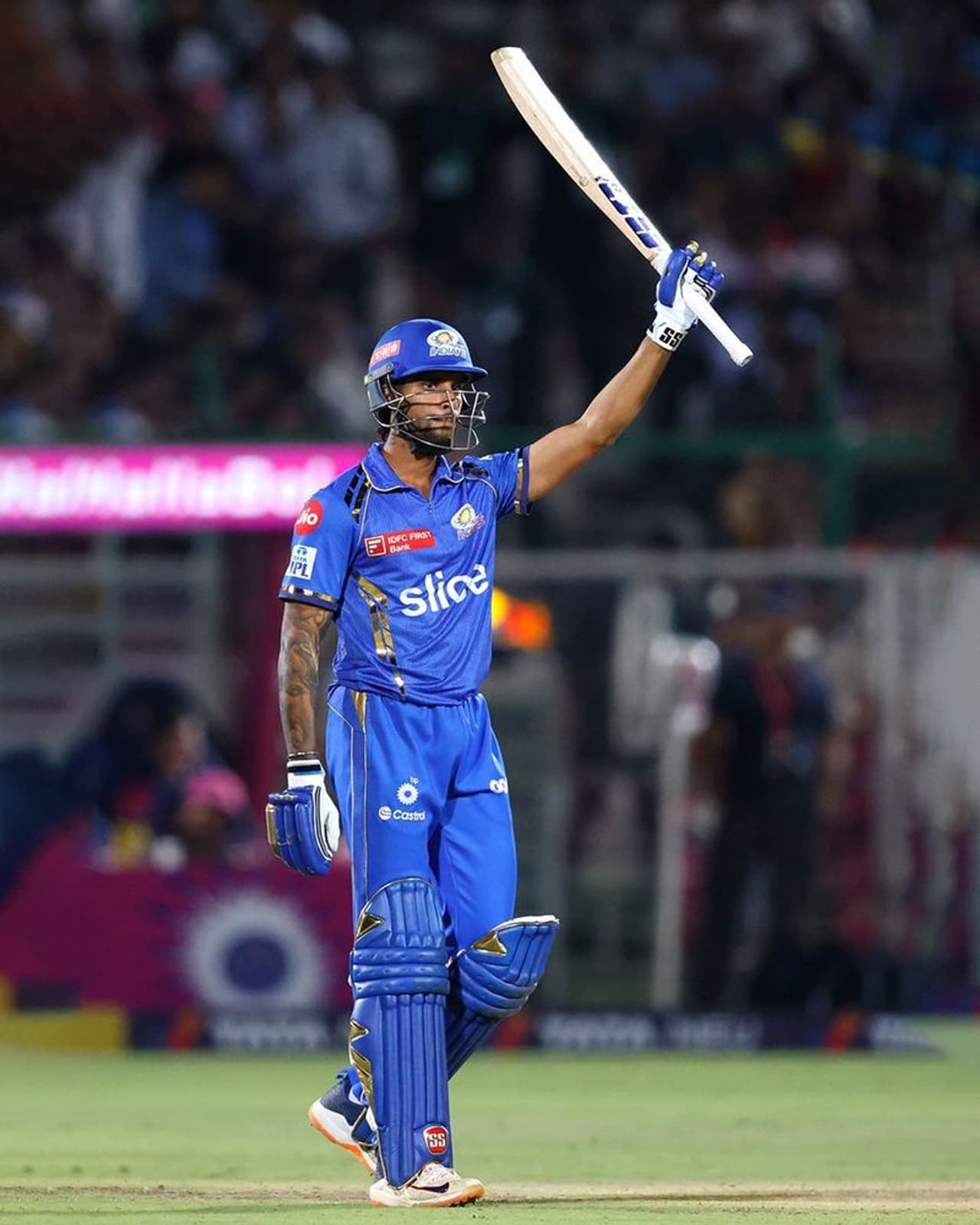 சவாய் மான்சிங் ஸ்டேடியத்தில் மும்பை இந்தியன்ஸ் மற்றும் ராஜஸ்தான் ராயல்ஸ் அணிகளுக்கு இடையிலான ஐபிஎல் 2024 தொடரின் 38ஆவது லீக் நடைபெற்று வருகிறது. இதில், டாஸ் வென்ற மும்பை கேப்டன் ஹர்திக் பாண்டியா பேட்டிங் தேர்வு செய்தார். அதன்படி மும்பை இந்தியன்ஸ் அணியில் ரோகித் சர்மா மற்றும் இஷான் கிஷான் இருவரும் தொடக்க வீரர்களாக களமிறங்கினர்.