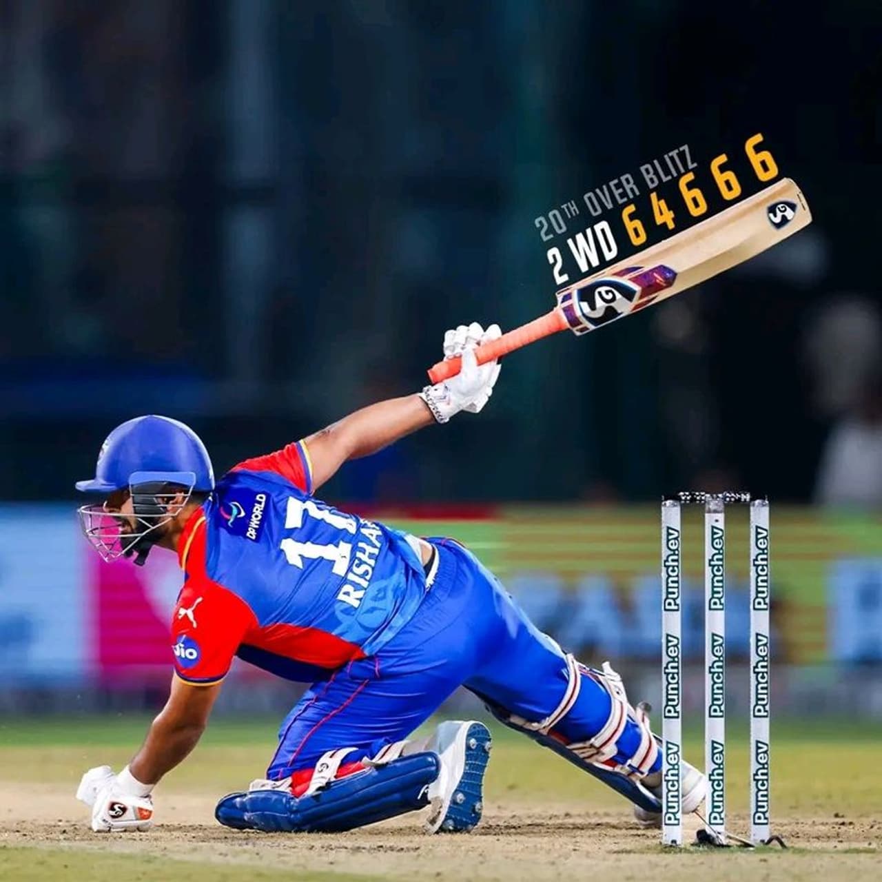 - கடைசி ஓவரை பொளந்து கட்டிய ரிஷப் பண்ட் - 2, வைடு, 6, 4, 6, 6, 6 என்று 31 ரன்கள் எடுக்க 224 ரன்கள் குவித்த DC!