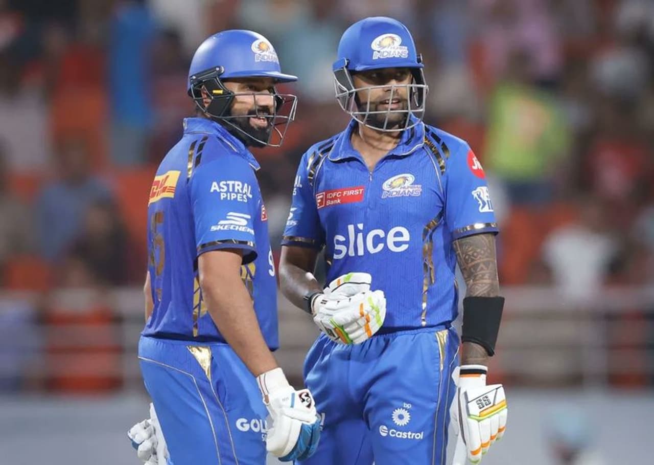 தொடக்க வீரர்களாக களமிறங்கிய இஷான் கிஷான் 8 ரன்களில் ஆட்டமிழக்க, தனது 250ஆவது ஐபிஎல் போட்டியில் விளையாடிய ரோகித் சர்மா 36 ரன்களில் ஆட்டமிழந்தார். இந்தப் போட்டியில் ரோகித் சர்மா 28 ரன்கள் எடுத்திருந்த போது ஐபிஎல் கிரிக்கெட்டில் 6500 ரன்களை நிறைவு செய்தார். மேலும், ஐபிஎல் ஐபிஎல் கிரிக்கெட்டில் 6500 ரன்களை கடந்த 4ஆவது வீரர் என்ற சாதனையையும் படைத்தார்.