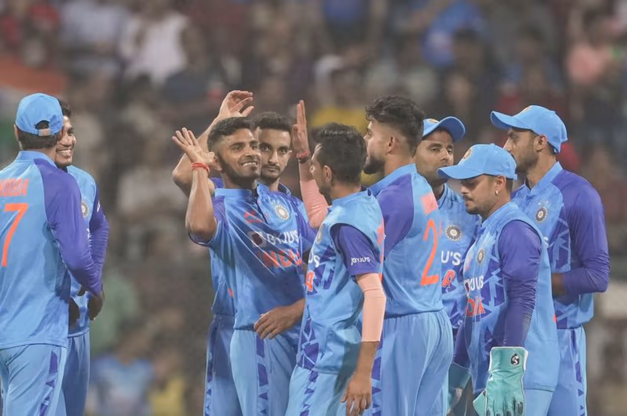 இஷான் கிஷன் (விக்கெட் கீப்பர்), ஷுப்மன் கில், ராகுல் திரிபாதி, சூர்யகுமார் யாதவ், ஹர்திக் பாண்டியா (கேப்டன்), தீபக் ஹூடா, அக்ஸர் படேல், வாஷிங்டன் சுந்தர், ஷிவம் மாவி, யுஸ்வேந்திர சாஹல், உம்ரான் மாலிக்.