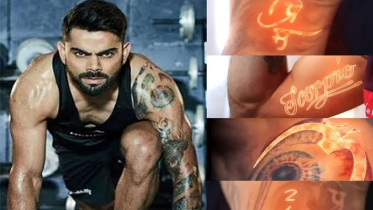 கிரிக்கெட் ரசிகர்களால் 'கிங் கோலி' என்று செல்லமாக அழைக்கப்படுபவர் விராட் கோலி. விளையாட்டு வீரர்களுக்கே உரிய ஃபிட்னஸ் விஷயங்களில் அக்கறை காட்டுவதுடன், விளம்பரங்களில் நடிப்பதாலும், உடல் அழகை பராமரிப்பதில் அதிக கவனம் செலுத்தி வருகிறார். அப்படி கட்டுக்கோப்பான உடலை கொண்டிருக்கும் விராட் கோலி தனது உடல் முழுவதிலும் டாட்டூ போட்டுள்ளார். அப்படி என்னென்ன டாட்டூ போட்டிருக்கிறார் தெரியுமா? கடவுளின் கண், ஜப்பானின் சாமுராய், 175, 269, அம்மாவின் பெயர், அப்பாவின் பெயர், சிவன், மடாலயம், ஸ்கார்பியோ, ஓம், பழங்குடி என்று பலவிதமான டாட்டூகள் போட்டுள்ளார். தற்போது புதிதாக ஒரு டாட்டூவையும் போட்டுள்ளார்.