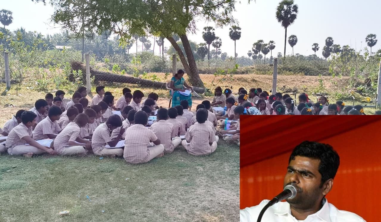 பள்ளி கட்டடம் இல்லாததால் மரத்தடியில் நடக்கும் வகுப்பு! பொங்கியெழுந்த அண்ணாமலை!
